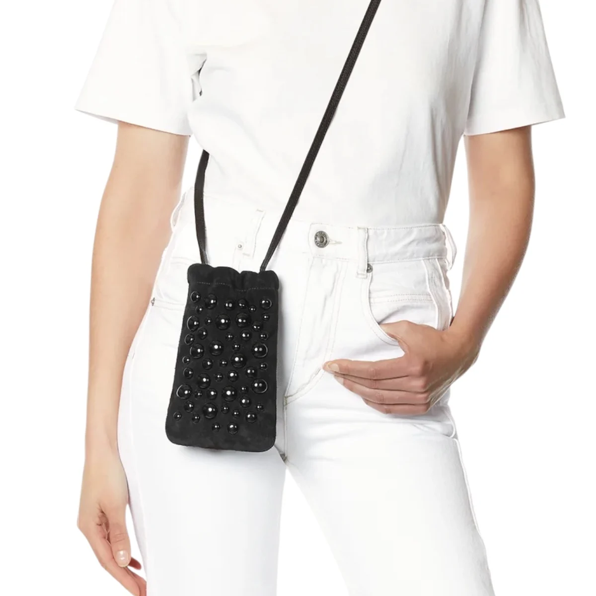 Etui mobile souple avec fine bandoulière en cuir. Longueur bandoulière 117 cm