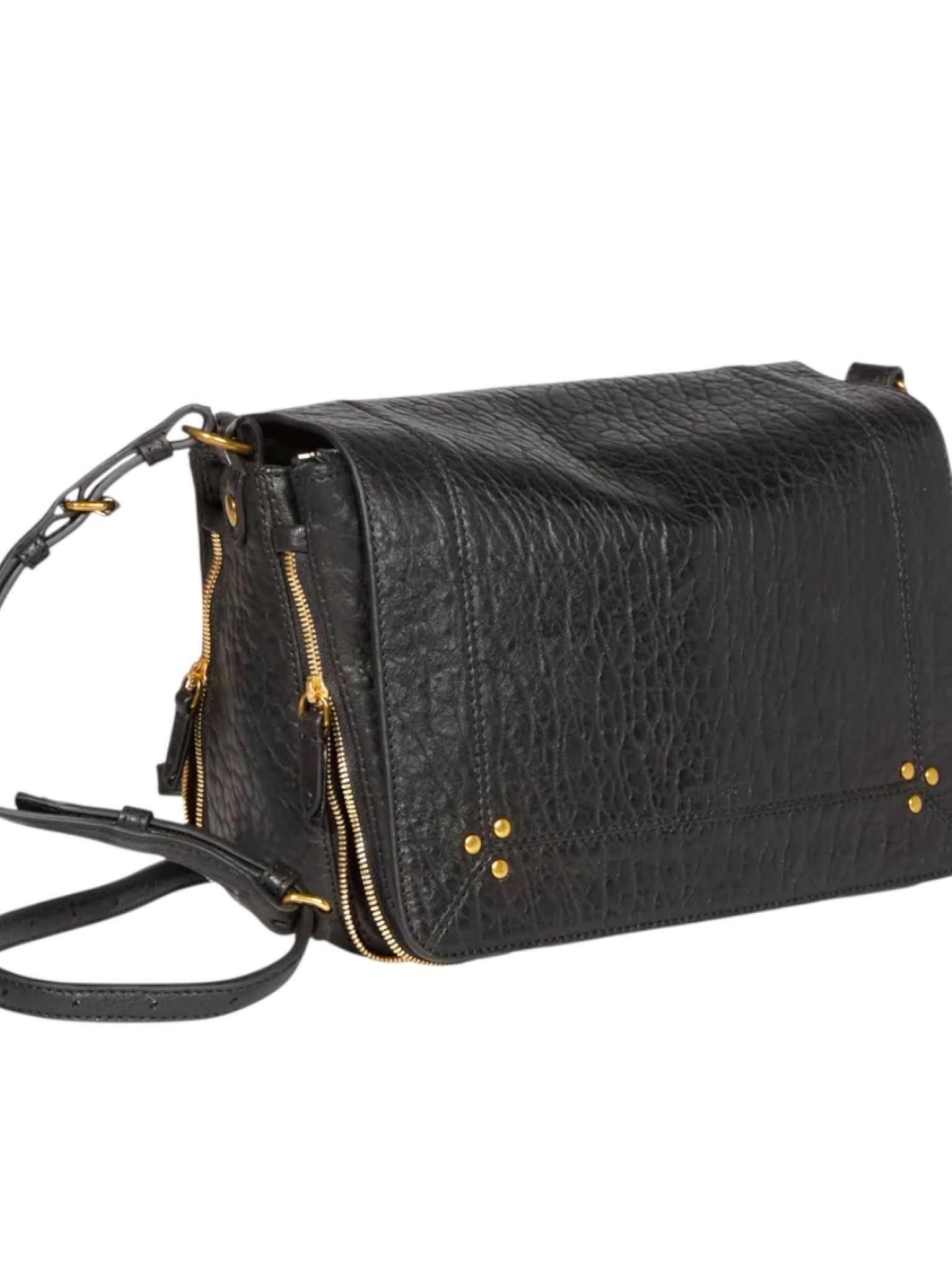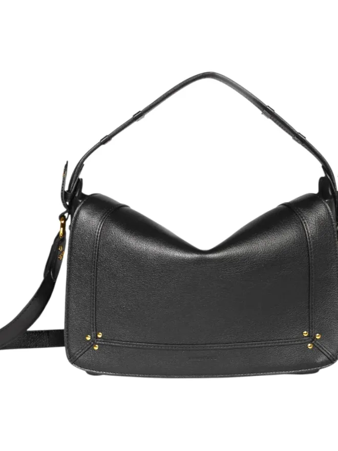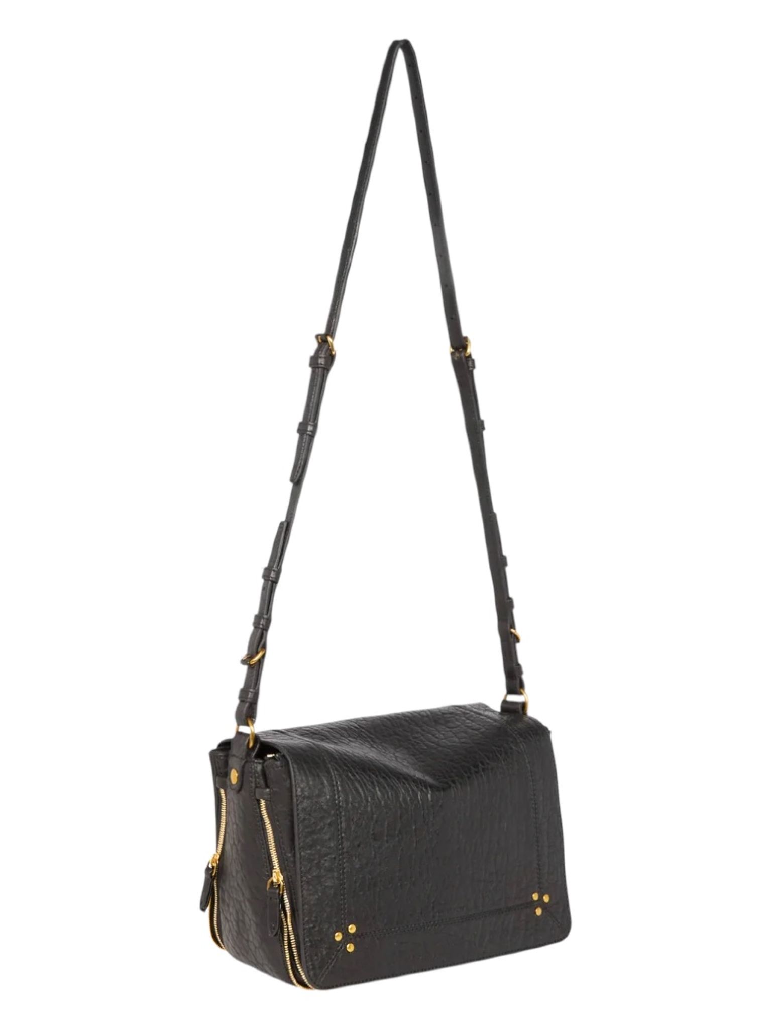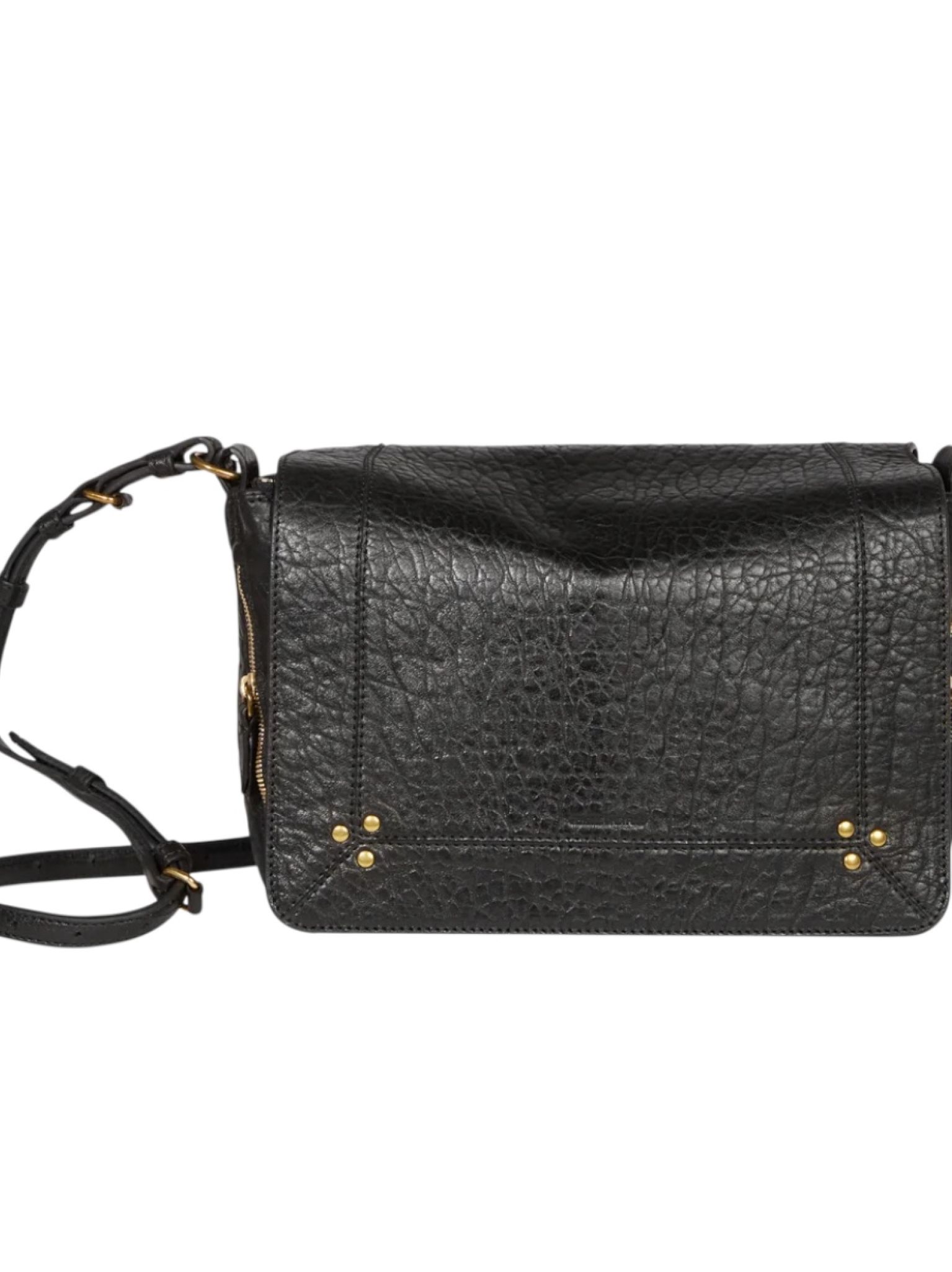 - Fermeture par un rabat en cuir aimanté. Une bandoulière amovible en cuir, mesurant au maximum 100 cm