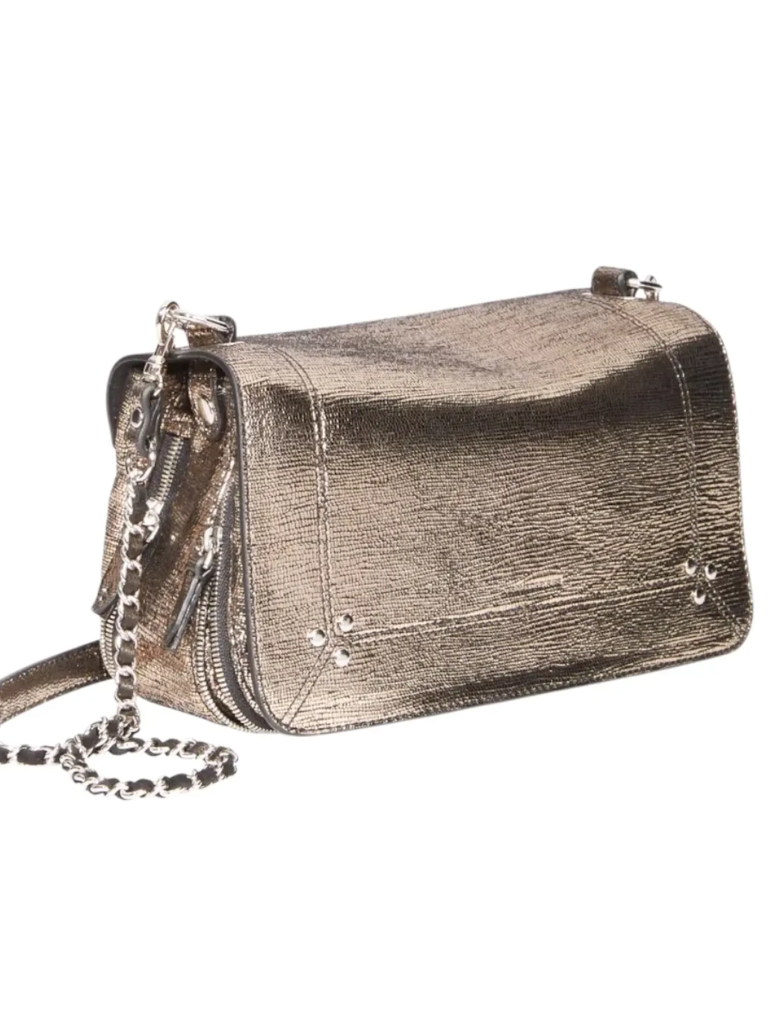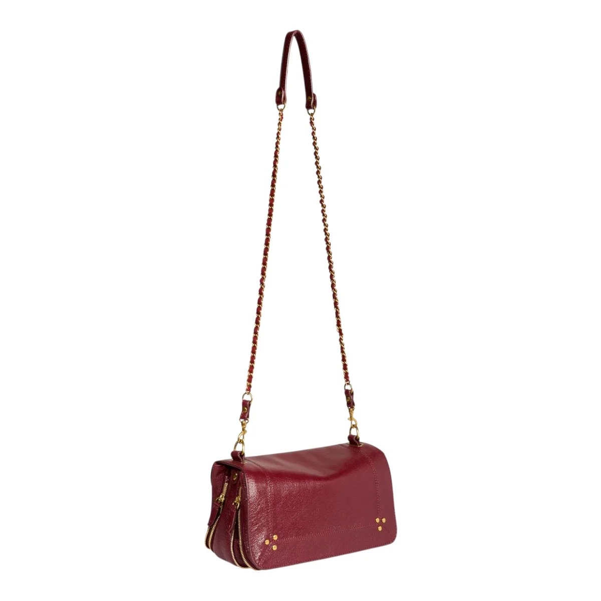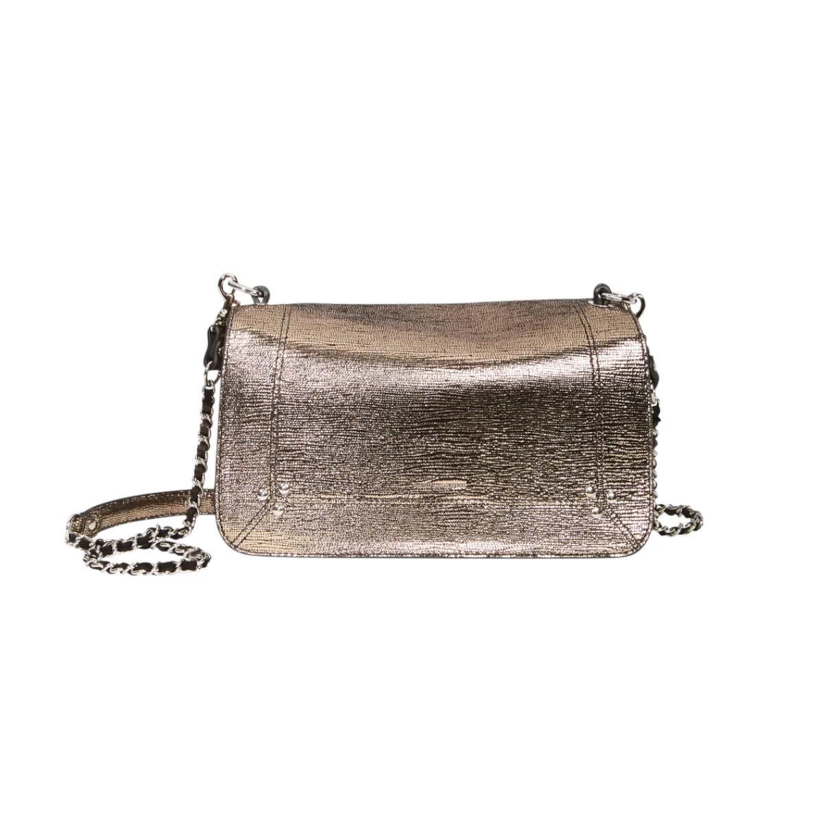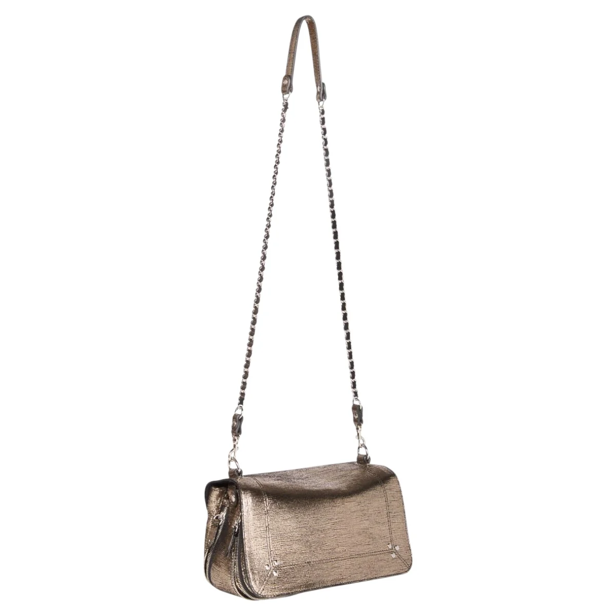 - Une bandoulière amovible tressée cuir et chaine réglable en deux longueurs : 65 cm ou 105 cm..