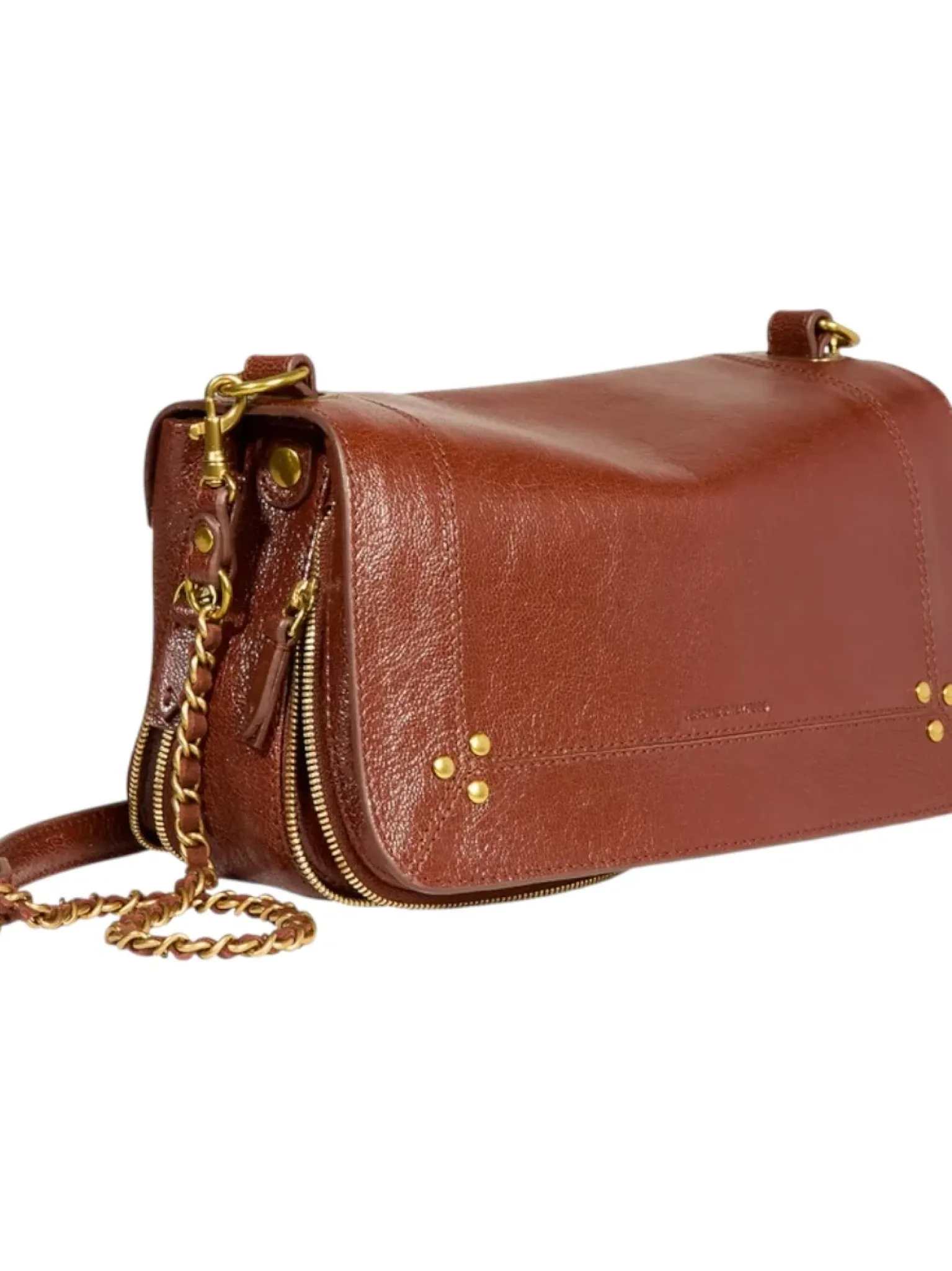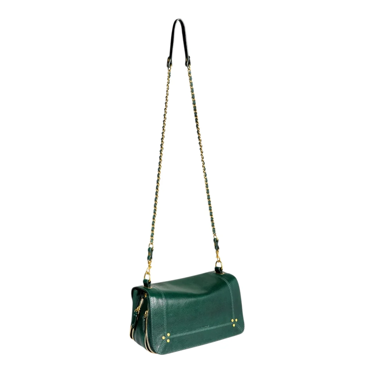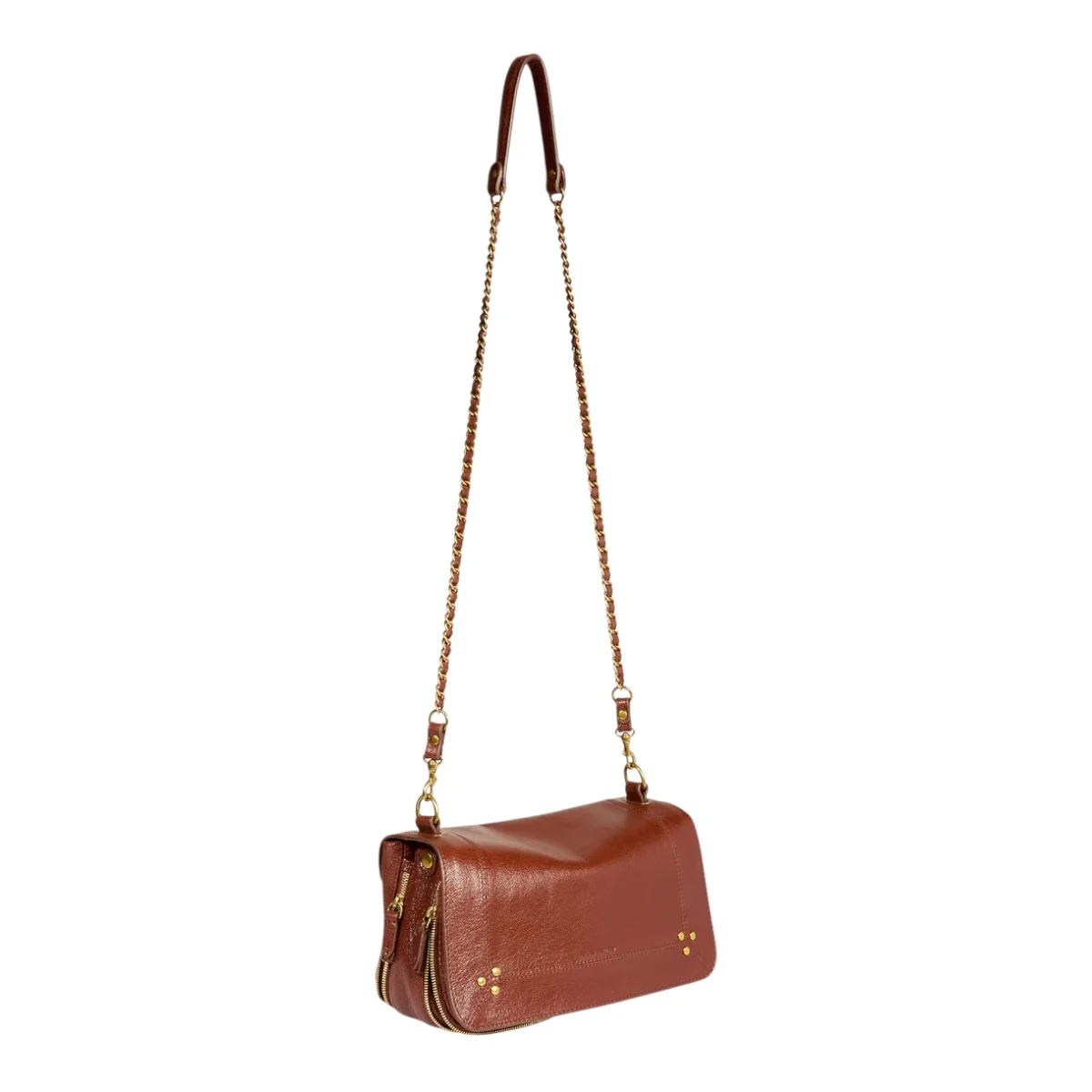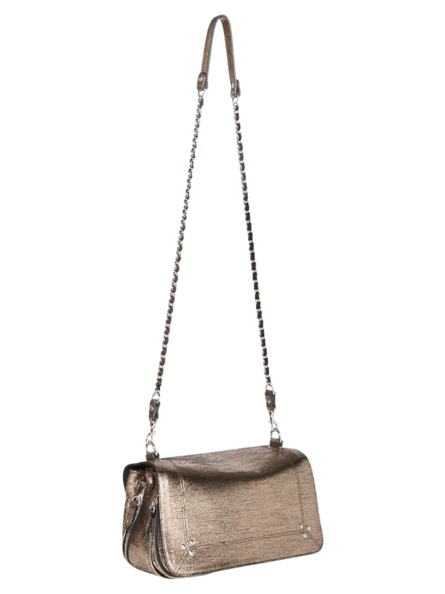 - Une bandoulière amovible tressée cuir et chaine réglable en deux longueurs : 65 cm ou 105 cm..