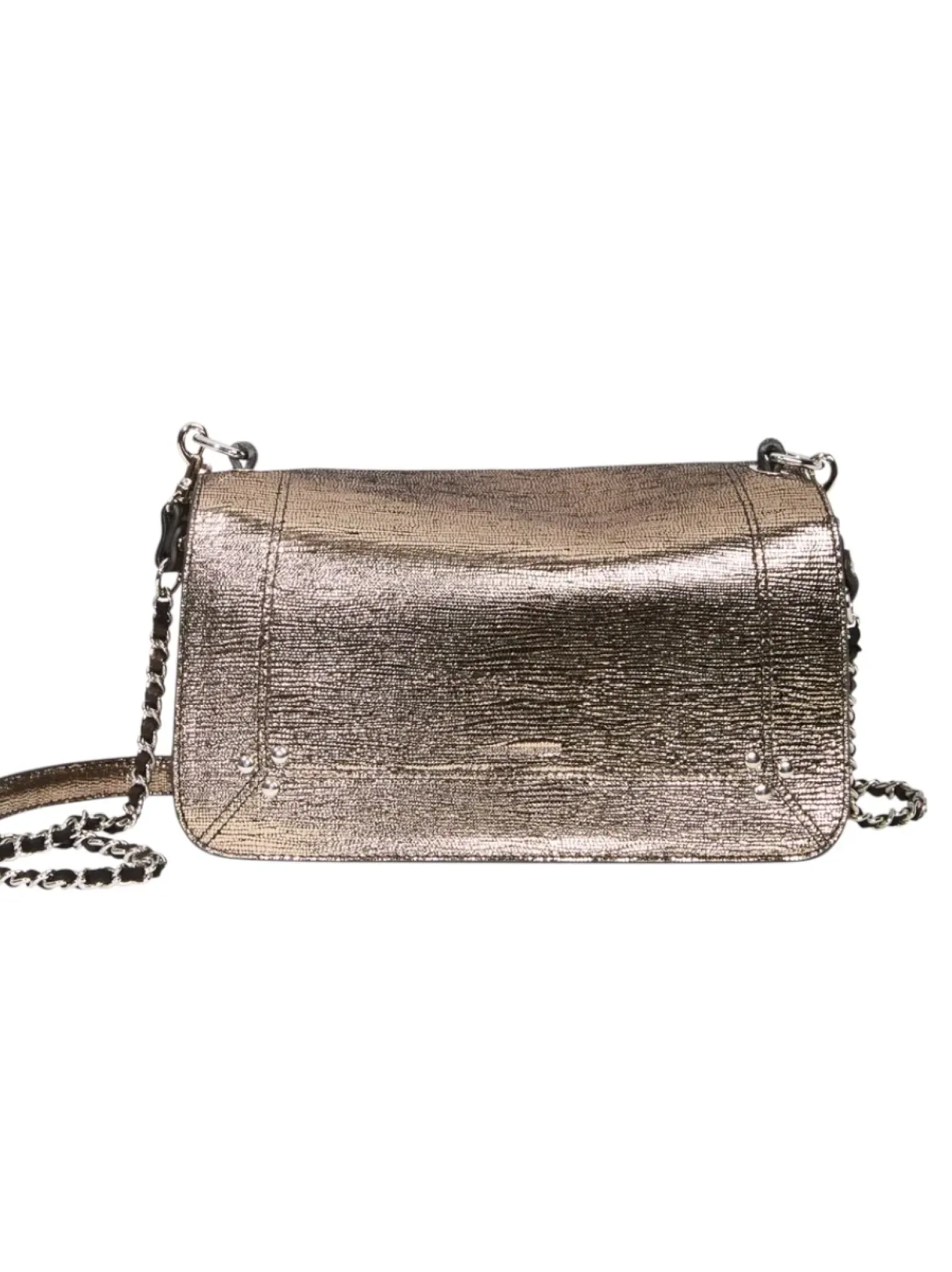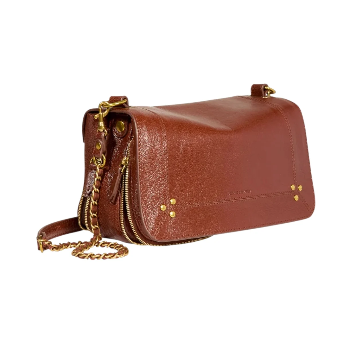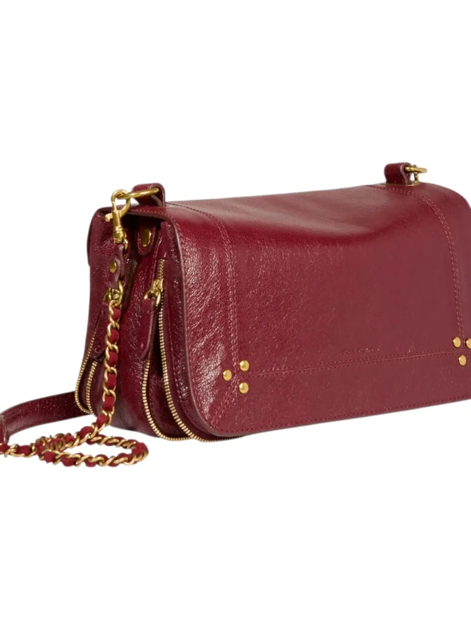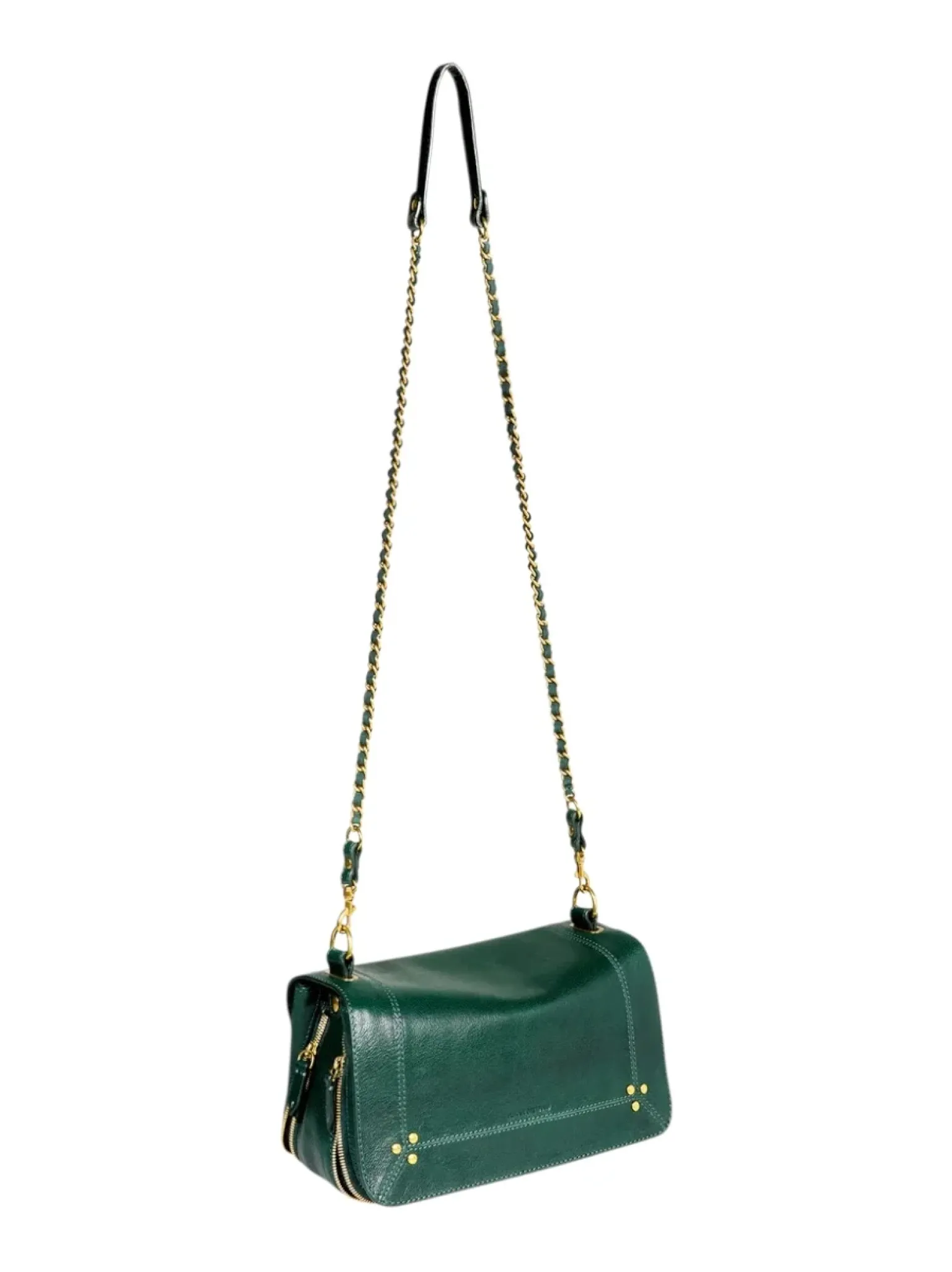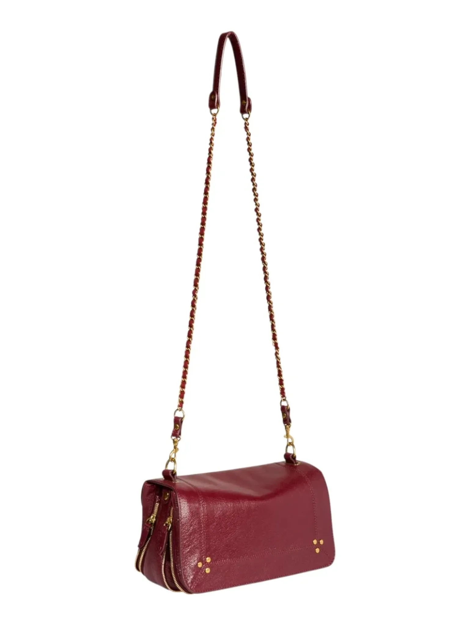 - Une bandoulière amovible tressée cuir et chaine réglable en deux longueurs : 65 cm ou 105 cm..