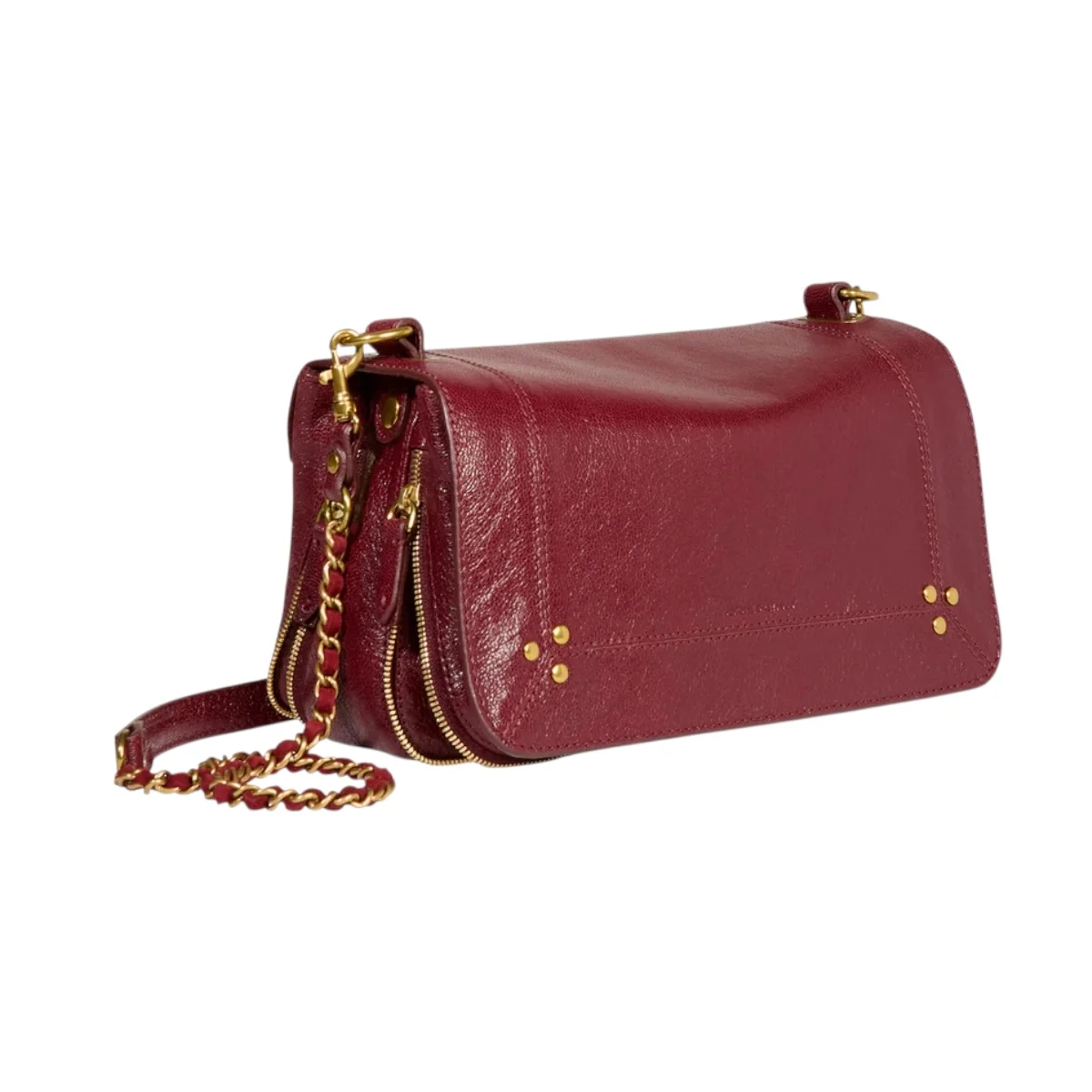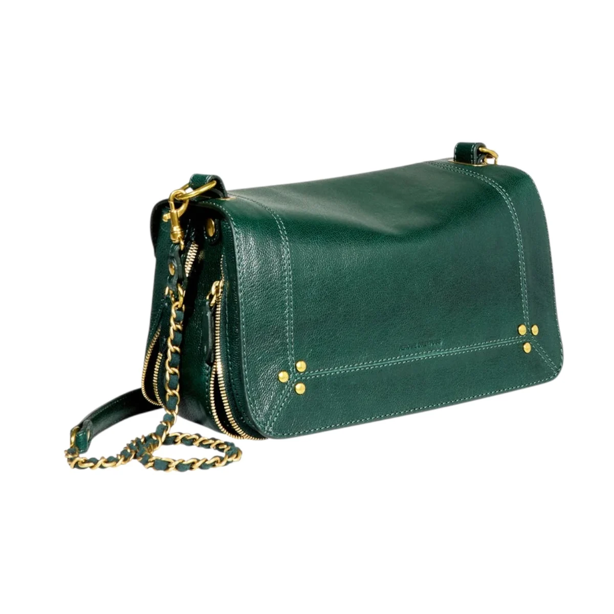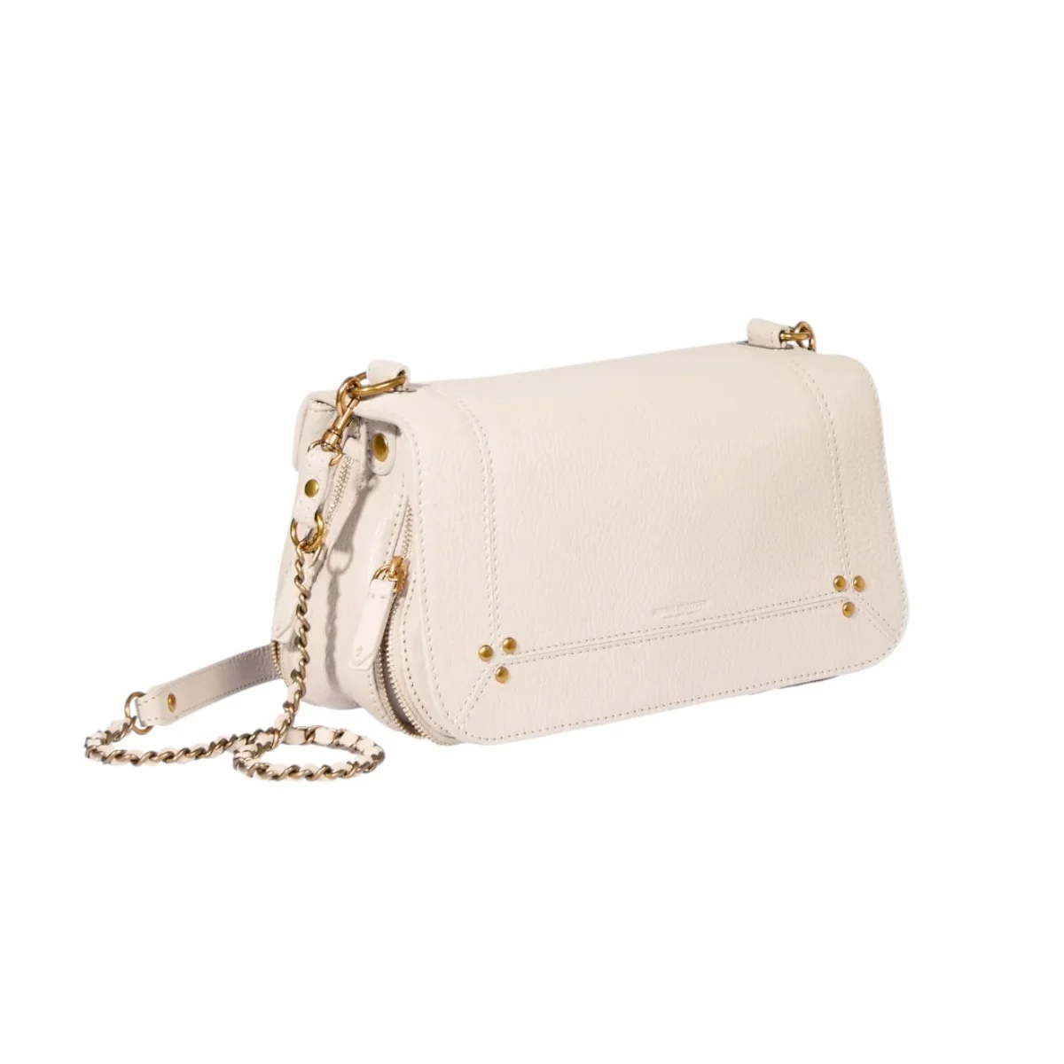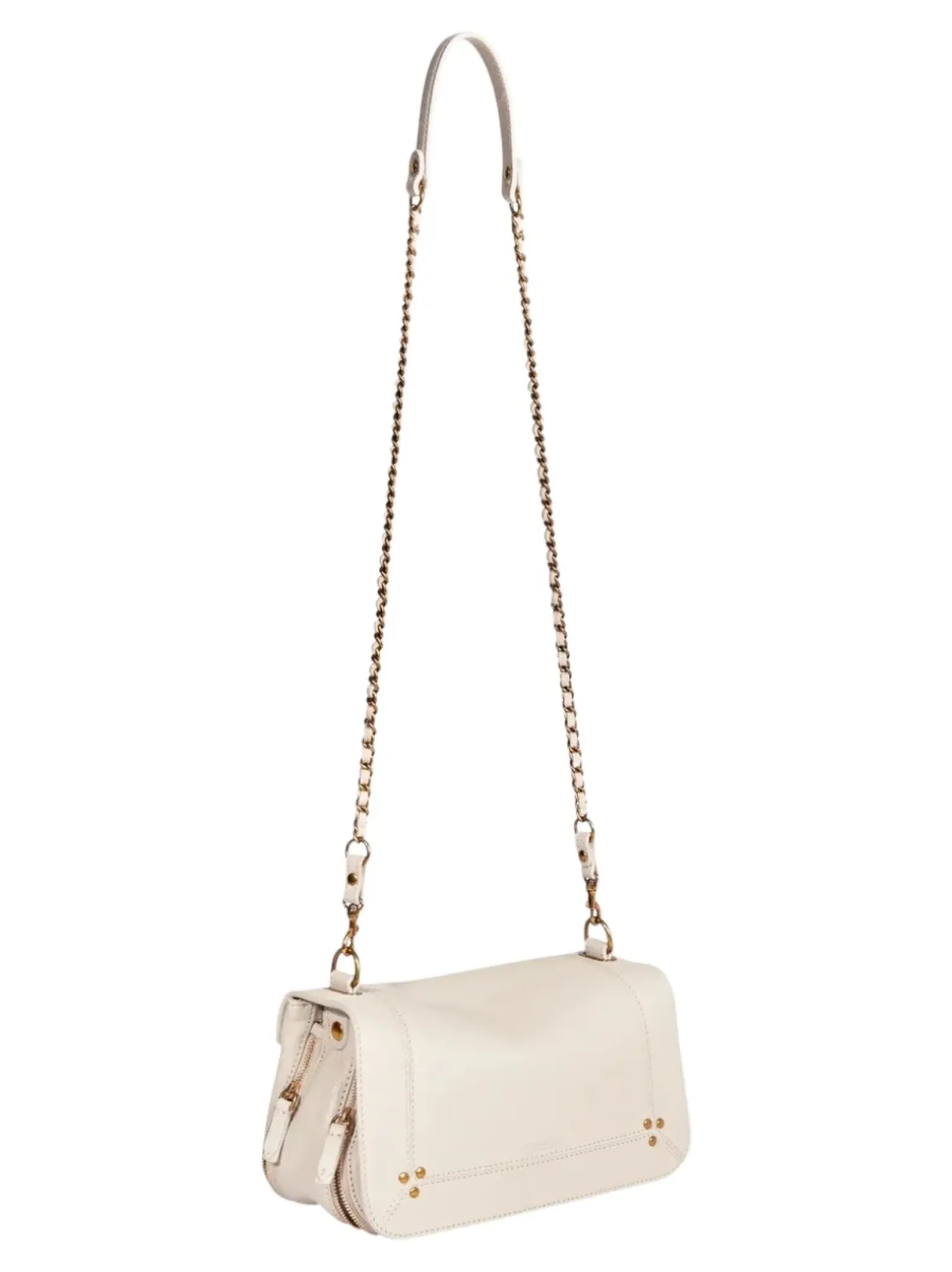 - Une bandoulière amovible tressée cuir et chaine réglable en deux longueurs : 65 cm ou 105 cm..