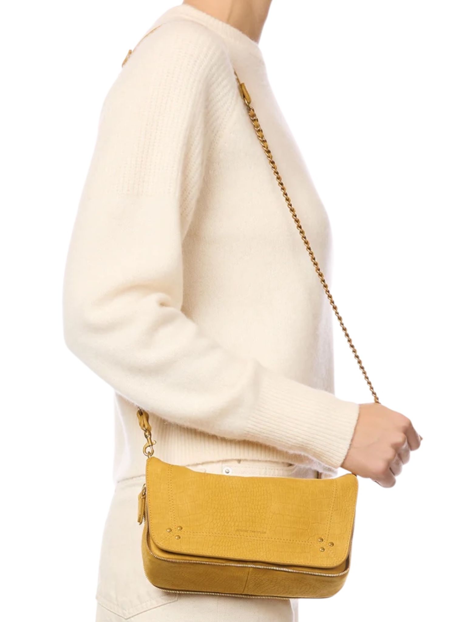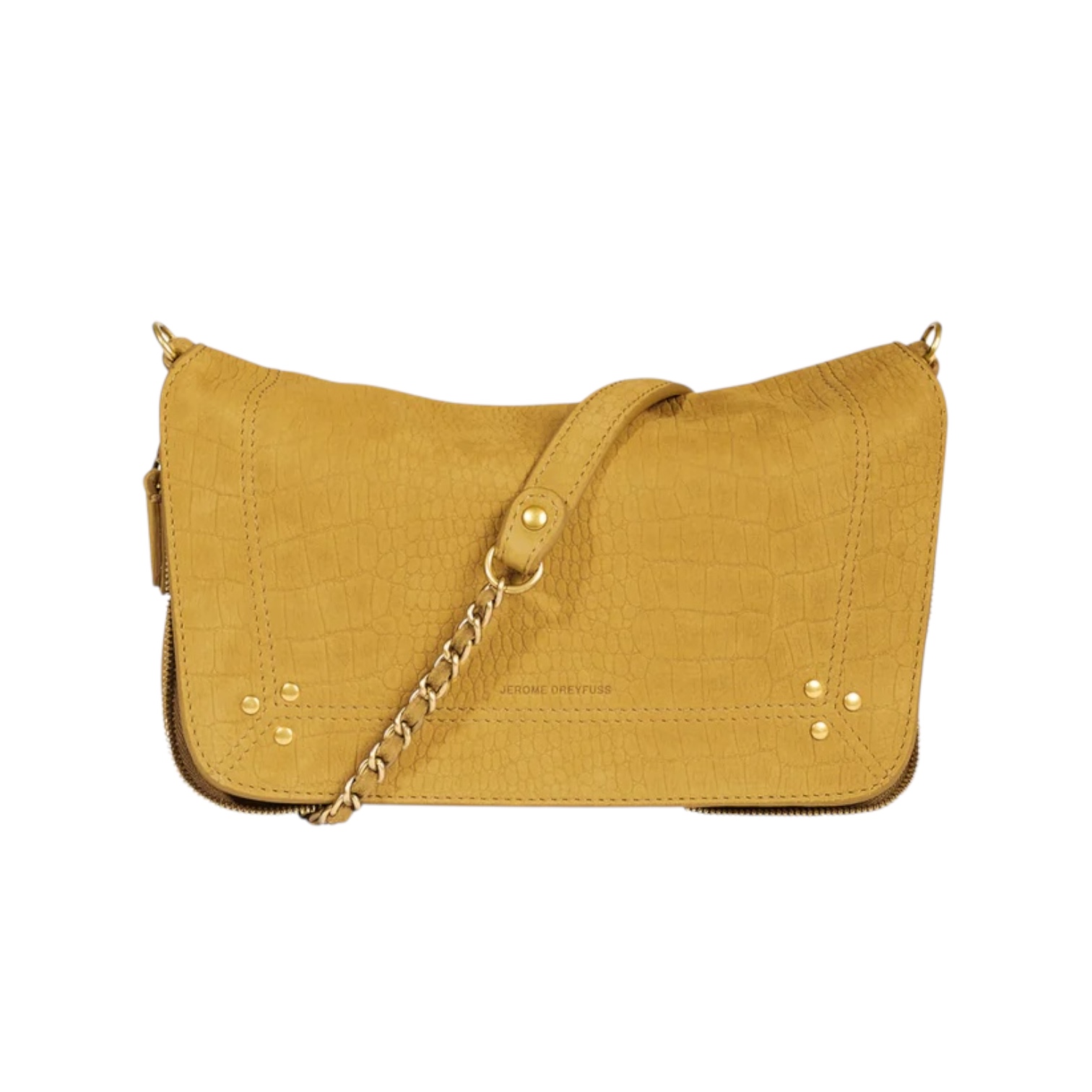 - Une bandoulière amovible en chaîne tressée de cuir mesurant 105 cm. Fermeture par un rabat en cuir aimanté