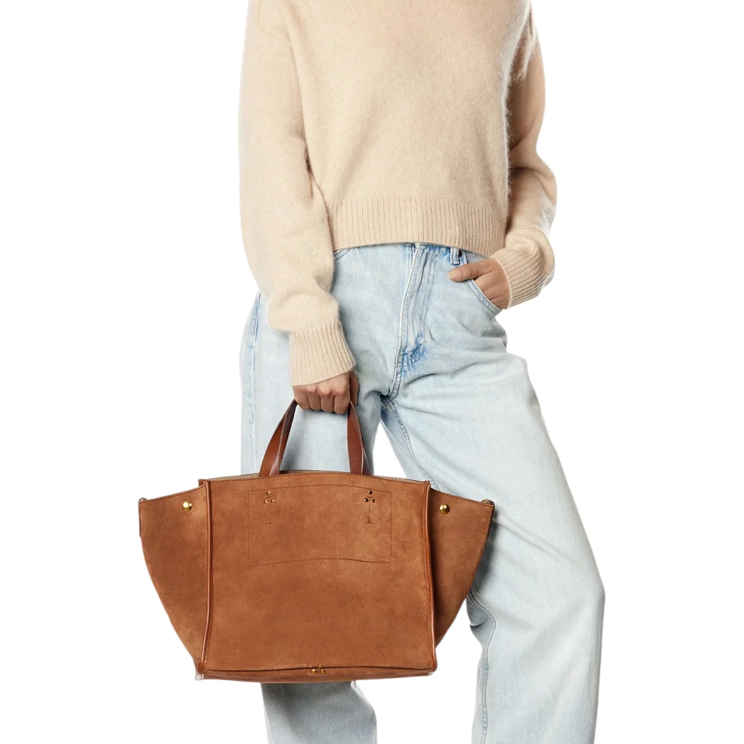 - Quatre poignées, de deux longueurs, en cuir sur le haut du sac