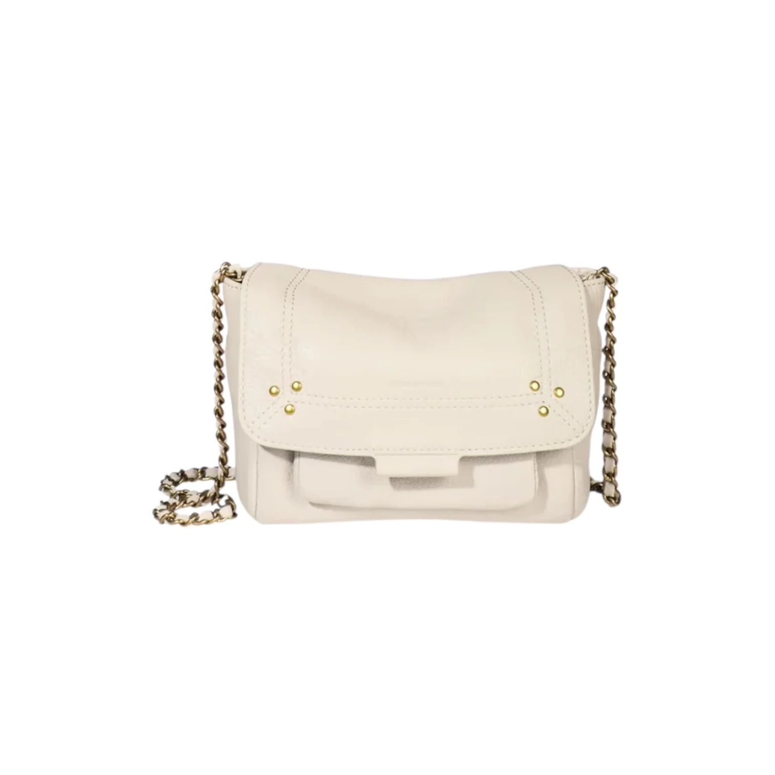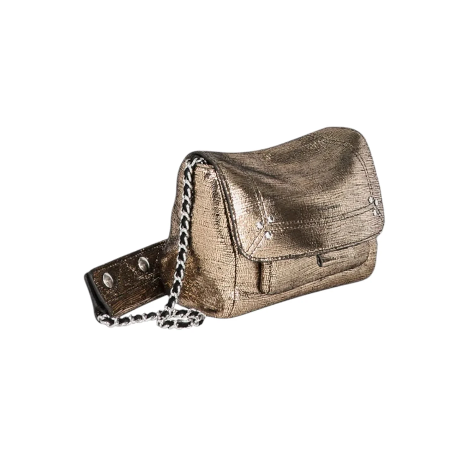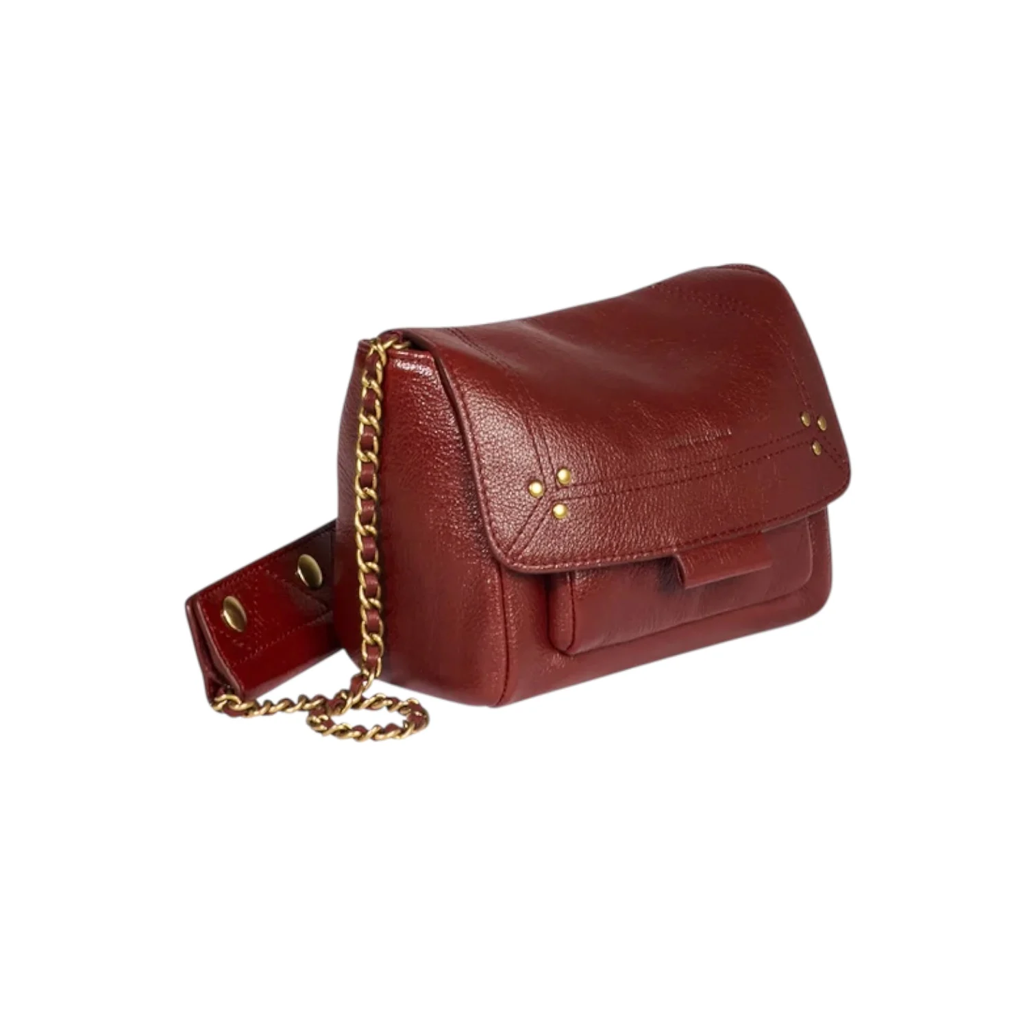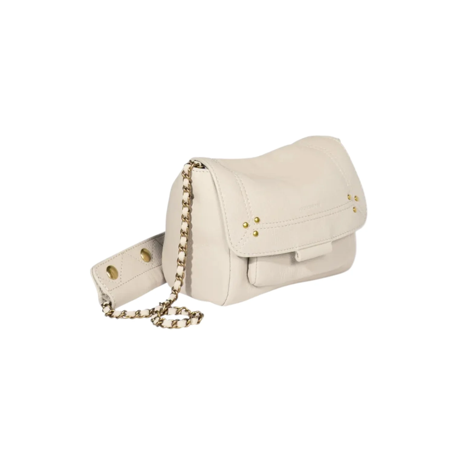 - Une bandoulière chaîne et cuir amovible et ajustable en deux longueurs; mesurant au maximum 105 cm et dimension au plus court 52,5 cm avec large patte épaule en cuir pressionnée