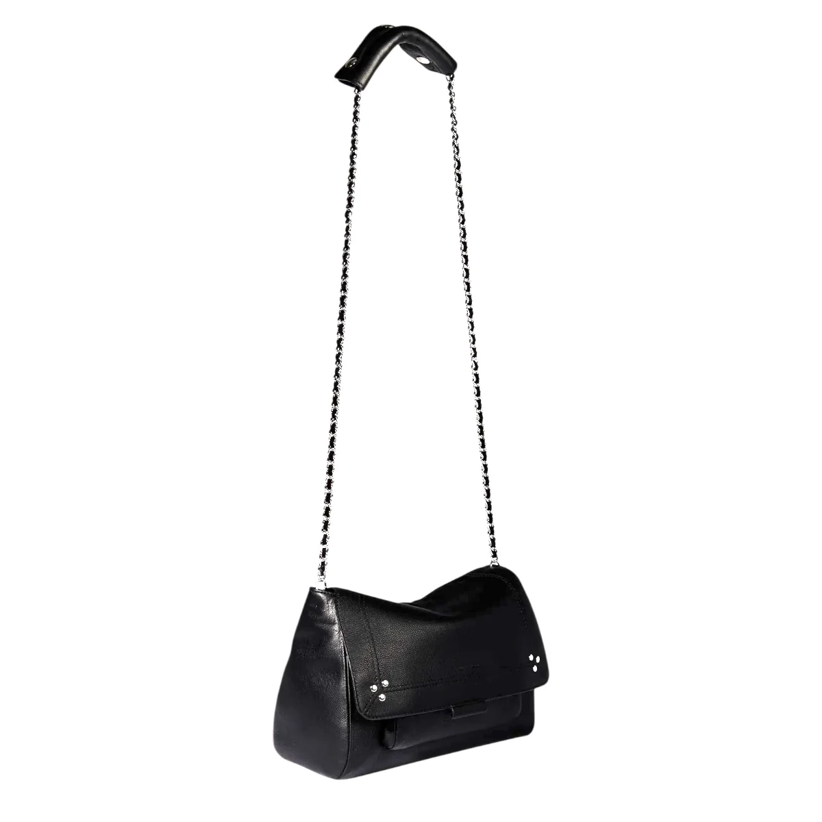- Une bandoulière chaîne et cuir amovible et ajustable en deux longueurs; mesurant au maximum 105 cm et dimension au plus court 52,5 cm; avec large patte épaule en cuir pressionnée