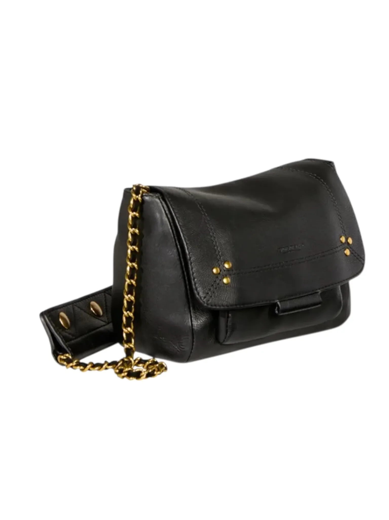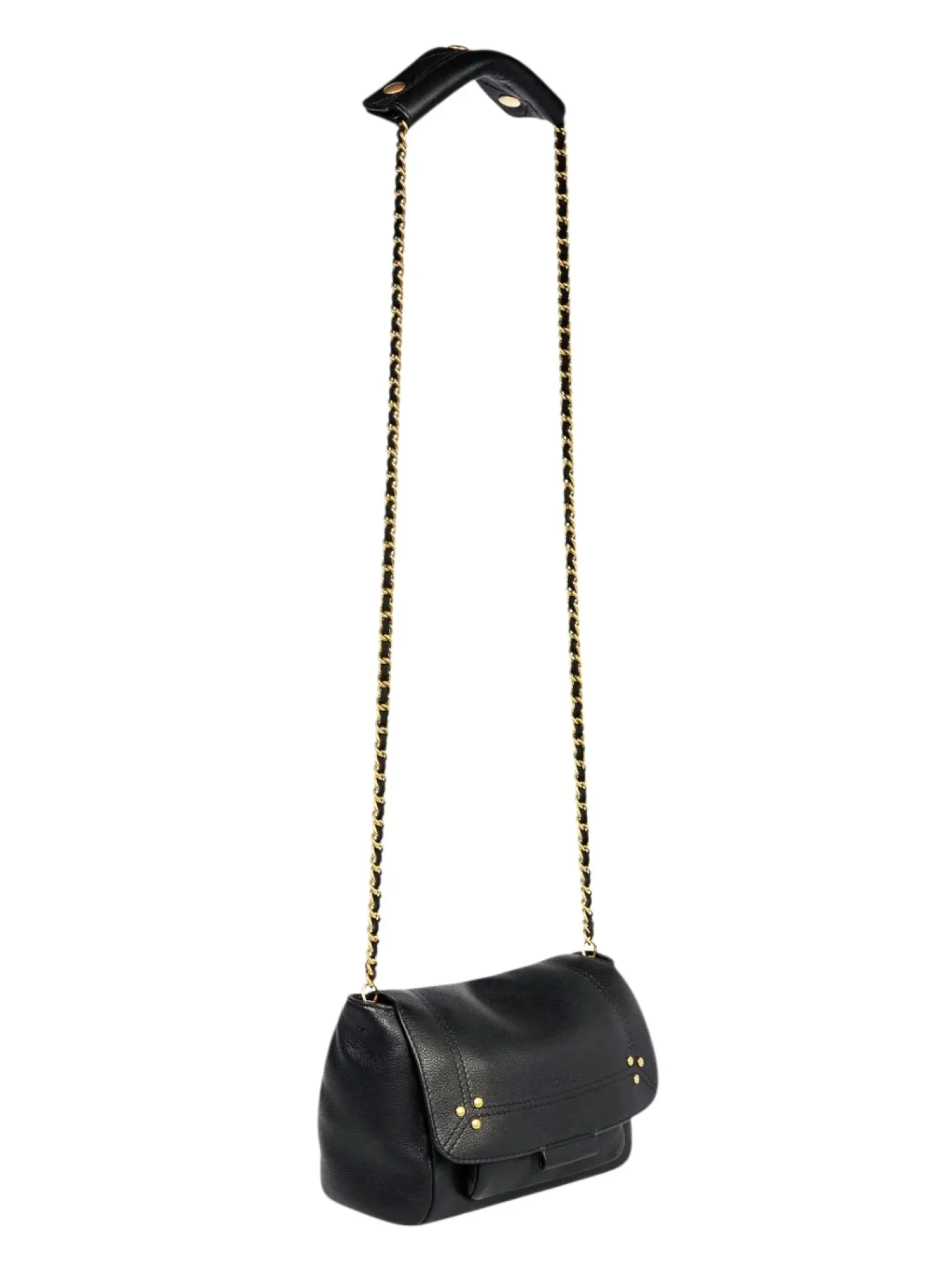 - Une bandoulière chaîne et cuir amovible et ajustable en deux longueurs; mesurant au maximum 105 cm et dimension au plus court 52,5 cm avec large patte épaule en cuir pressionnée