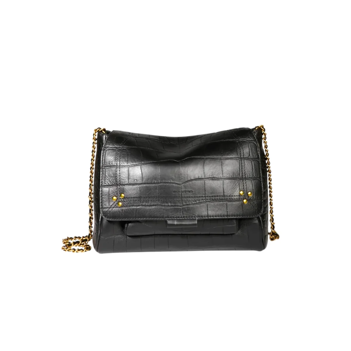 - Une bandoulière chaîne et cuir amovible et ajustable en deux longueurs; mesurant au maximum 105 cm et dimension au plus court 52,5 cm; avec large patte épaule en cuir pressionnée