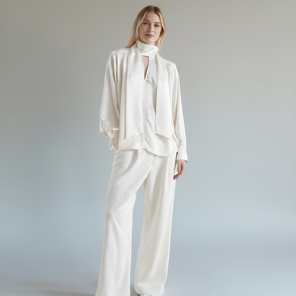 Coupe ample et droite, avec un tombé souple et fluide.