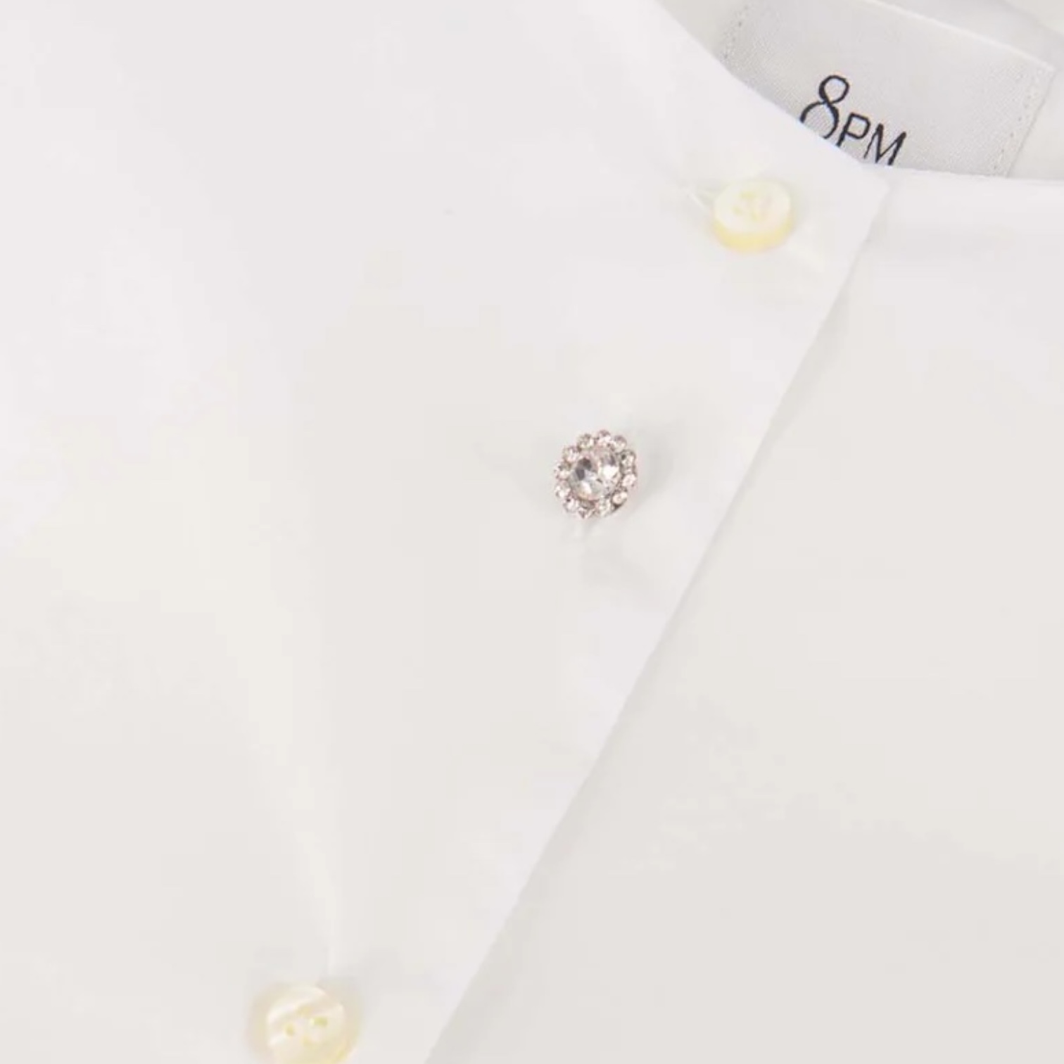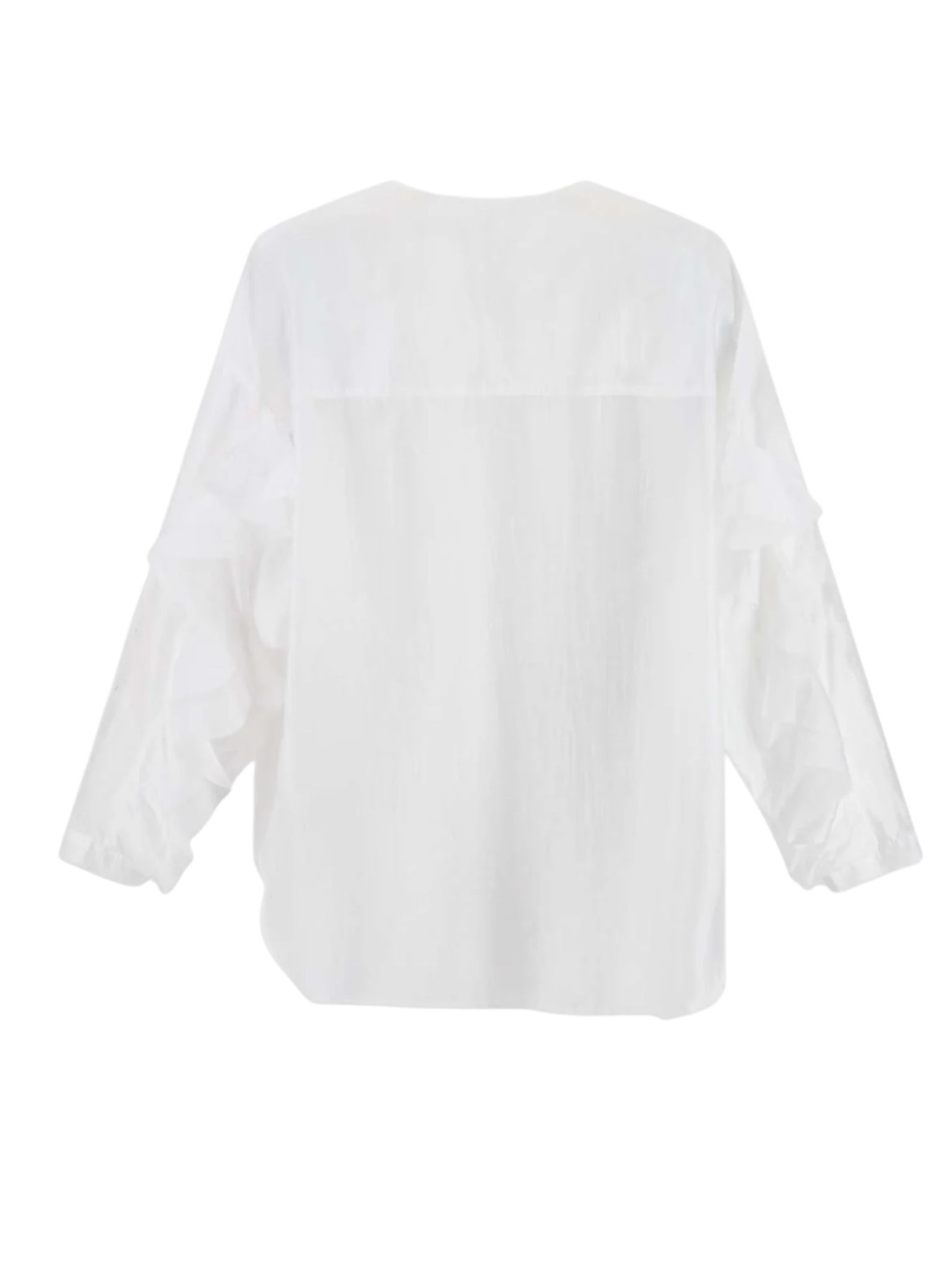 - Chemise à manches longues en mousseline de viscose et popeline de coton, col mandarin, bouton bijou sur le devant, volants aux manches, coupe ample