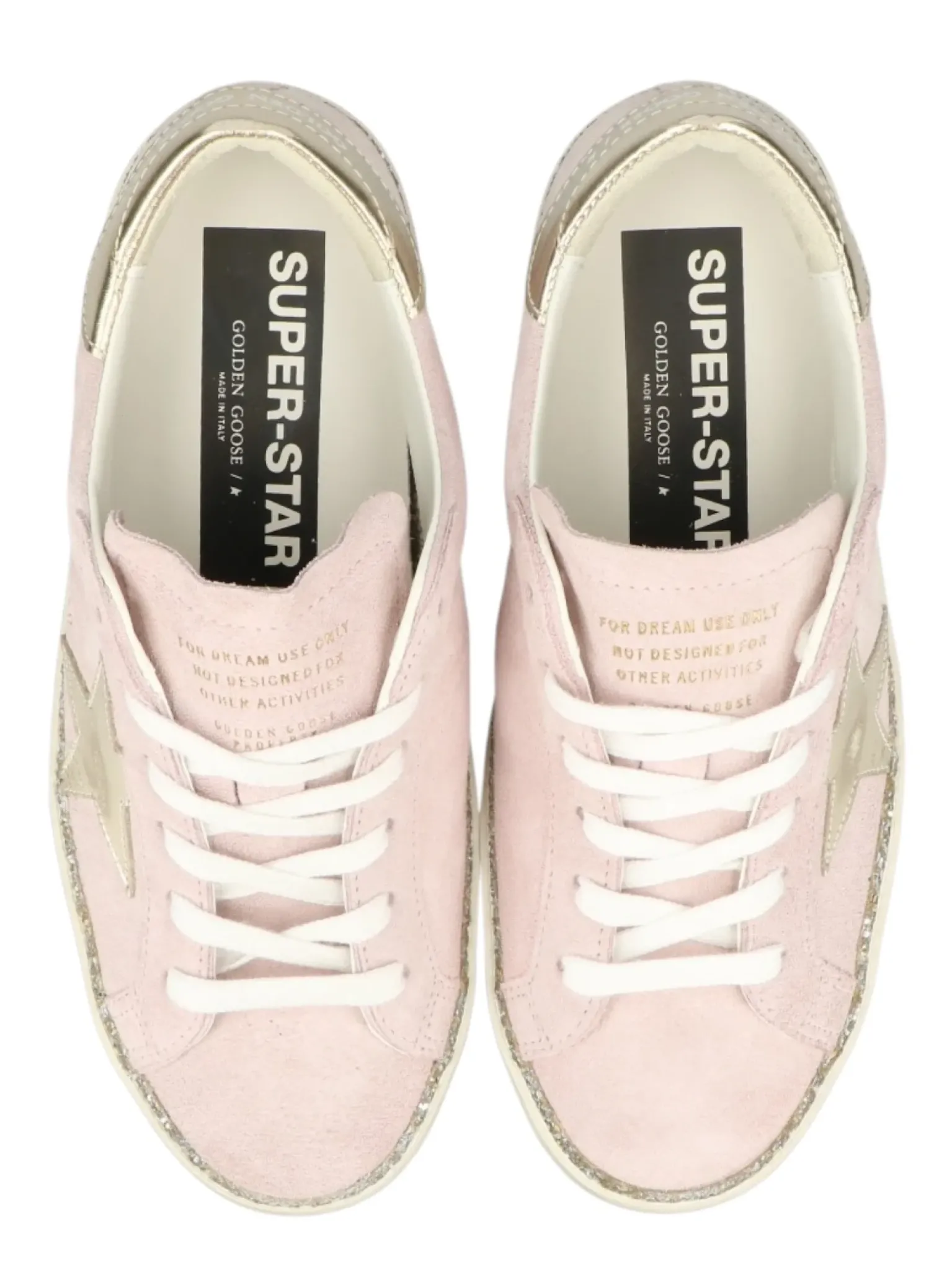 - Lacets blancs, glitter or vieilli sur le tour de la semelle intérieur en maille bouclette et cuir. Inscription « GGDB/SSTAR » sur le côté extérieur