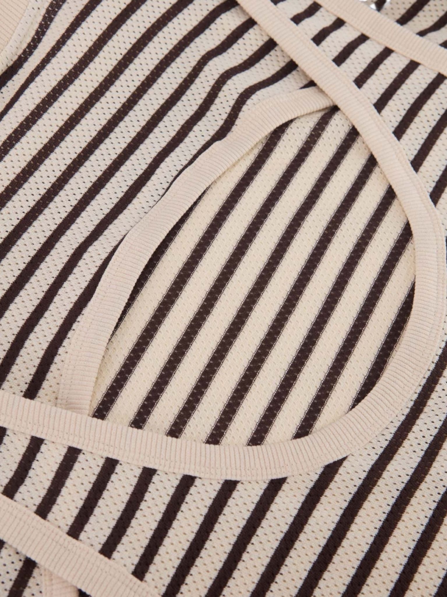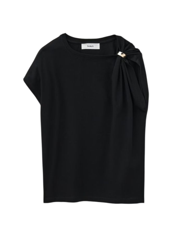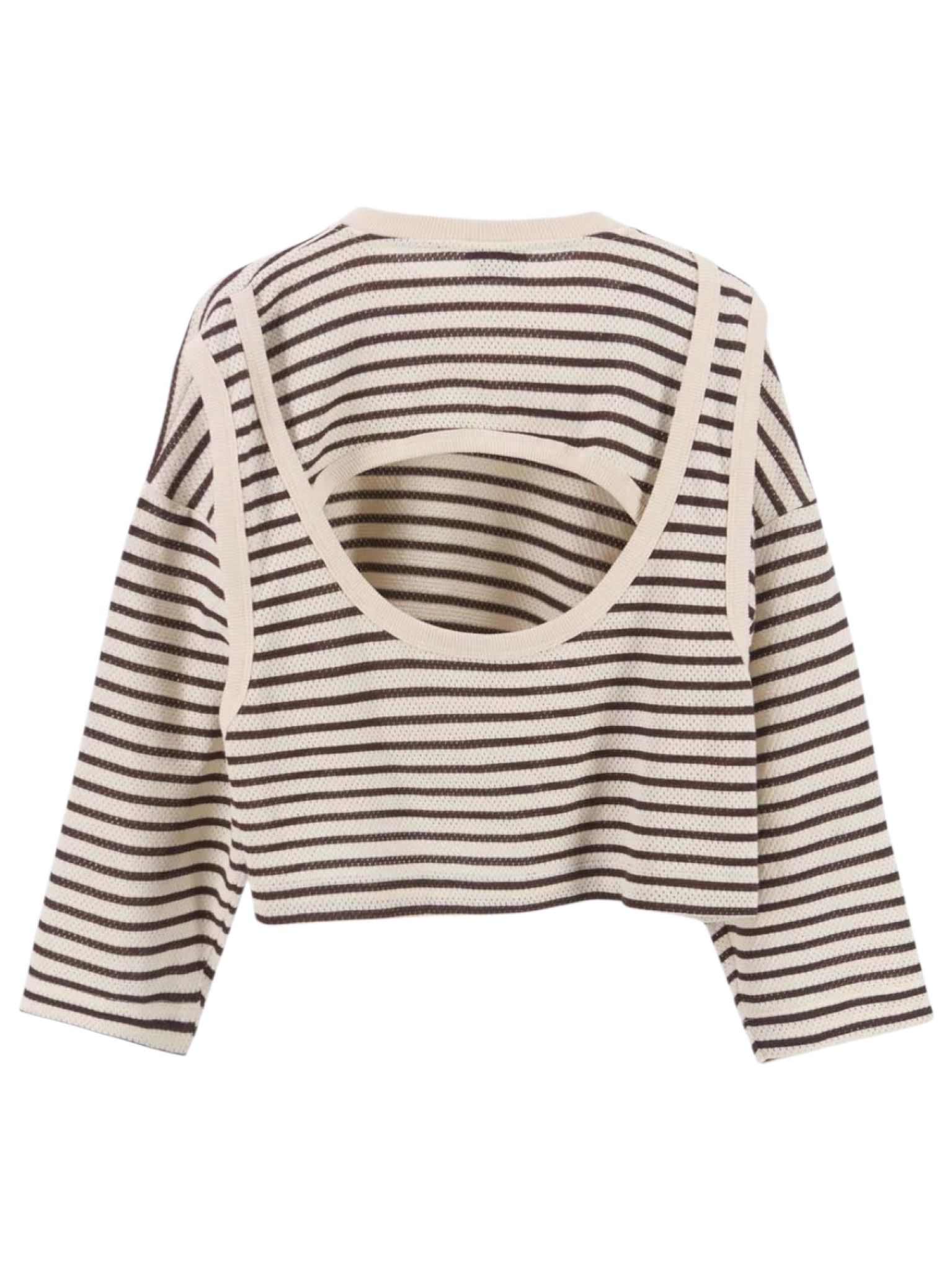 - T-shirt à manches longues en maille de coton, col rond, manches bouffantes, détail décolleté hublot dans le dos