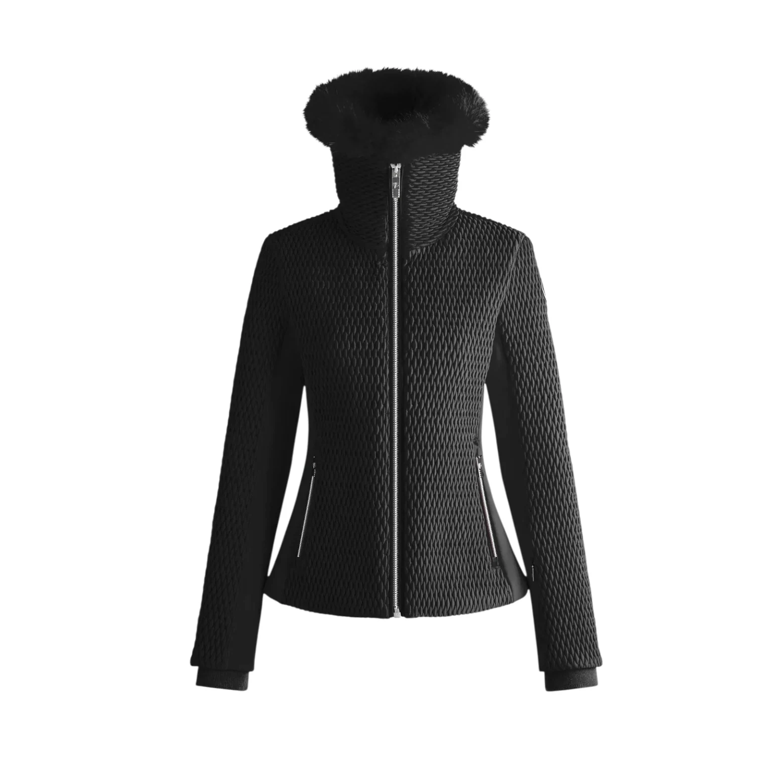 - Poches main, poche poitrine intérieure, poche ski pass zippées, pare-neige léger intégré, zips brillants