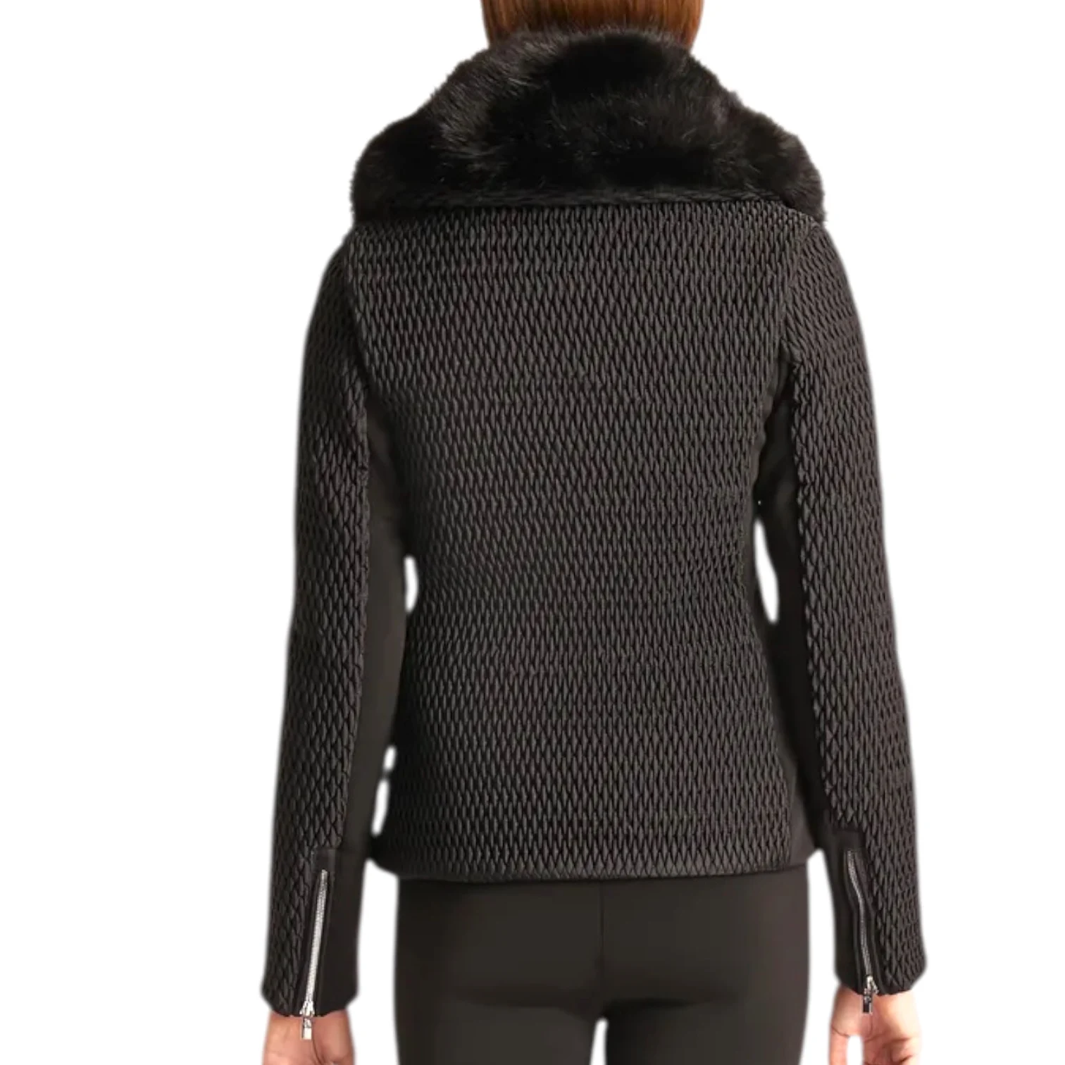 - Large col avec fausse fourrure amovible, manchons en tricot