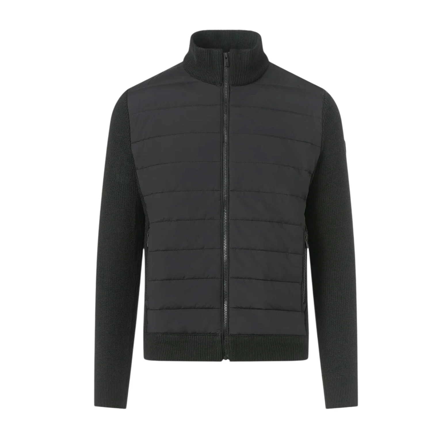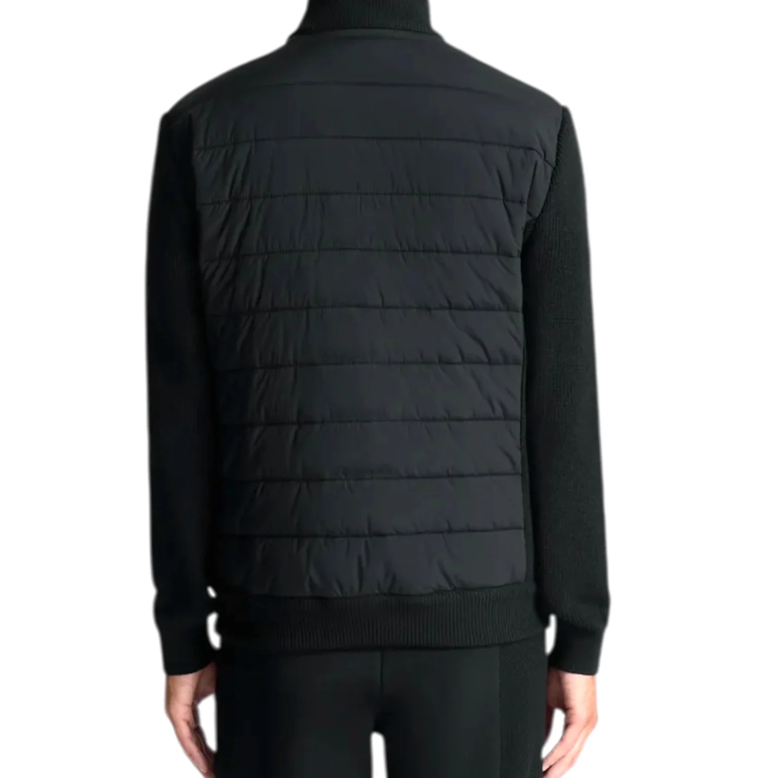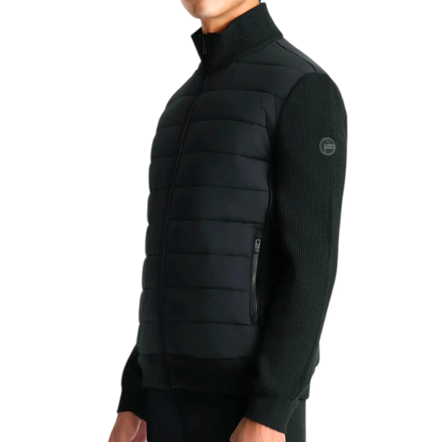 - Manches, col et panneaux latéraux tricotés
