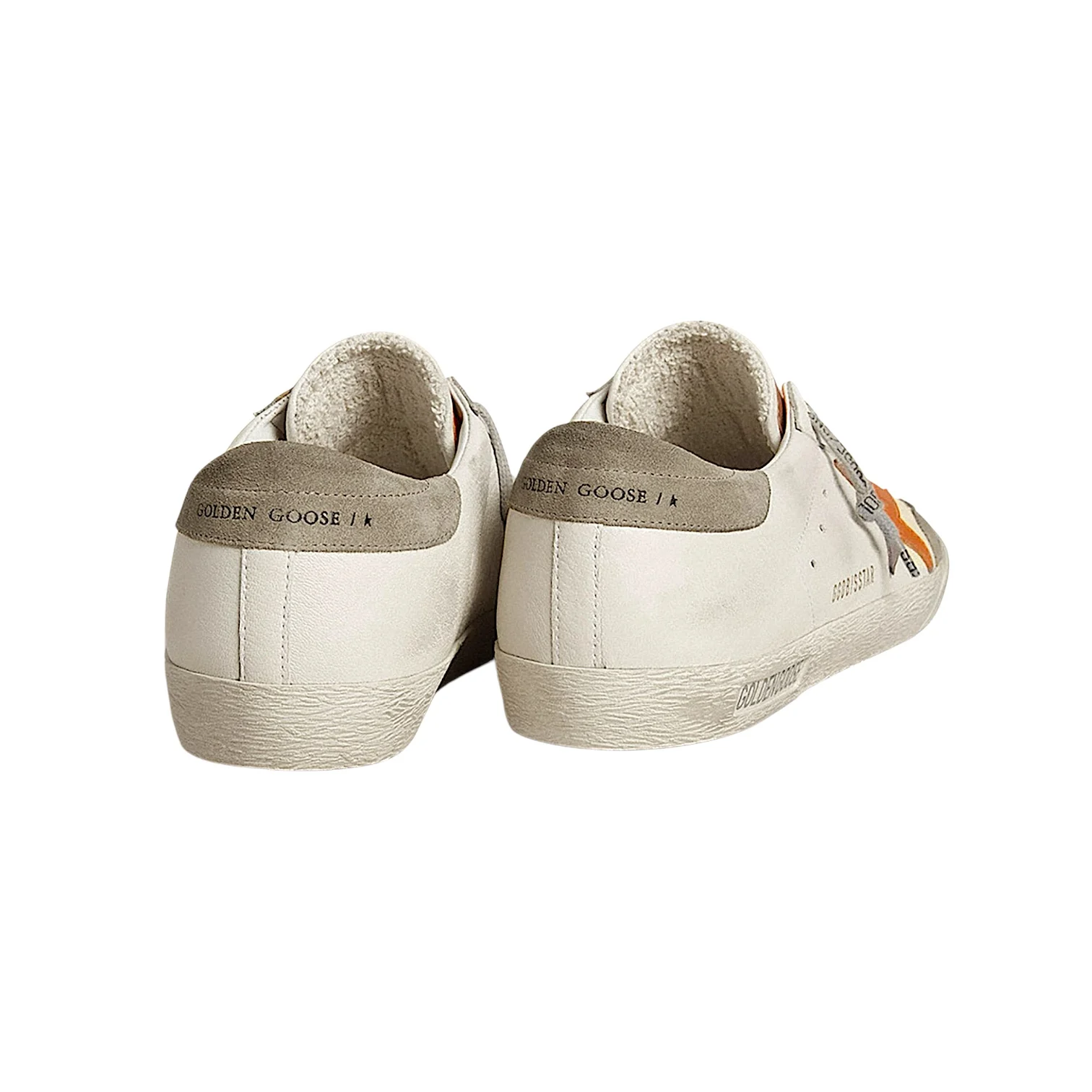 - Logo étoile en cuir orange, renfort talon en cuir gris, lacets gris
