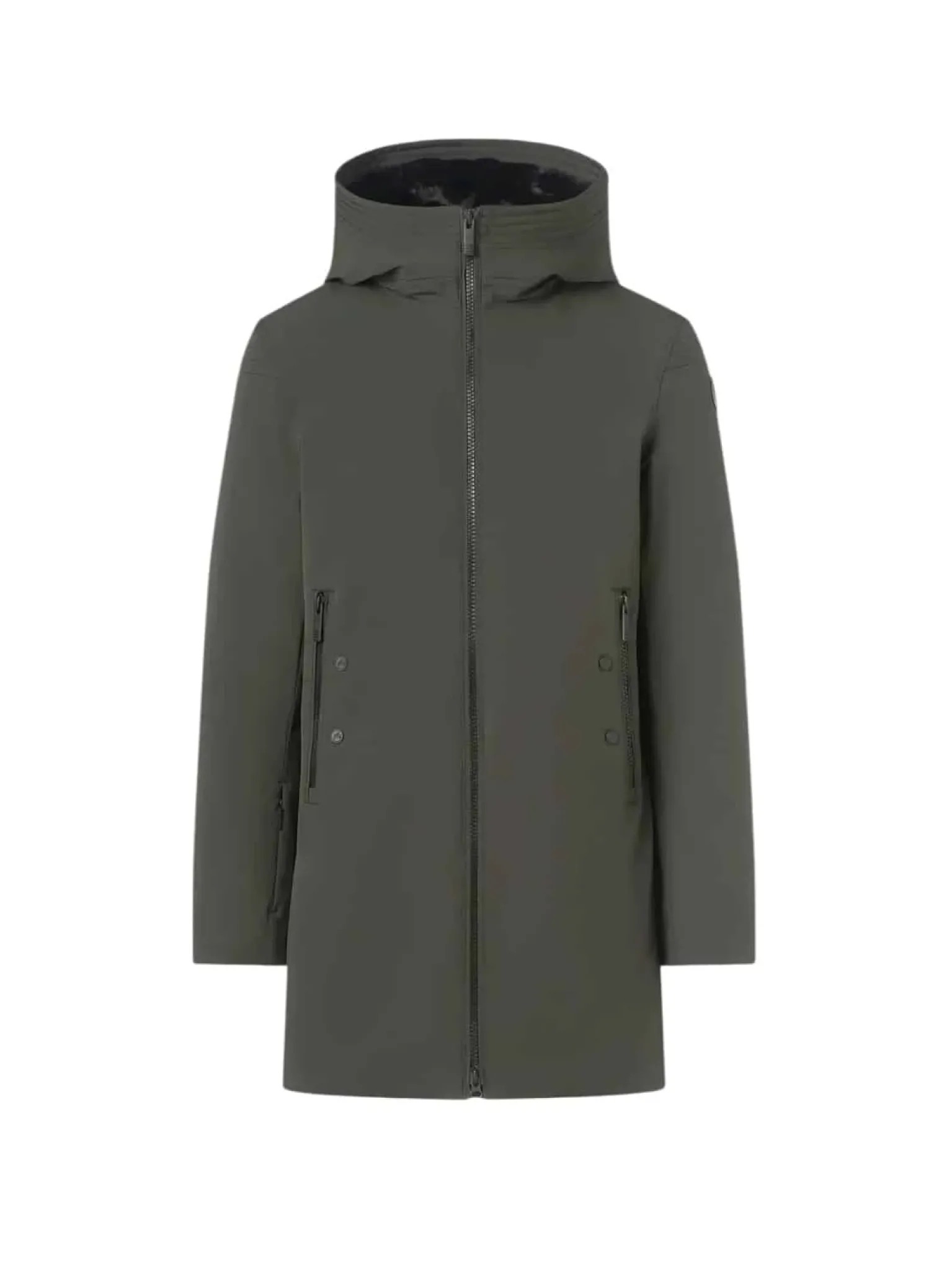 - Poches mains à double ouverture, poche city-pass, poche poitrine intérieure zippée