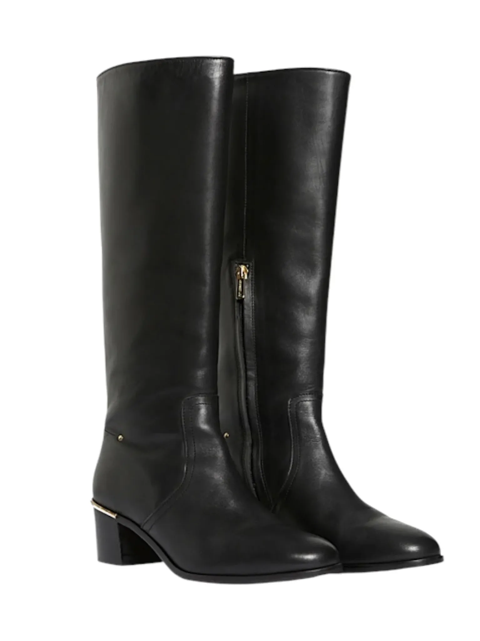 - Bottes hautes en cuir lisse noir