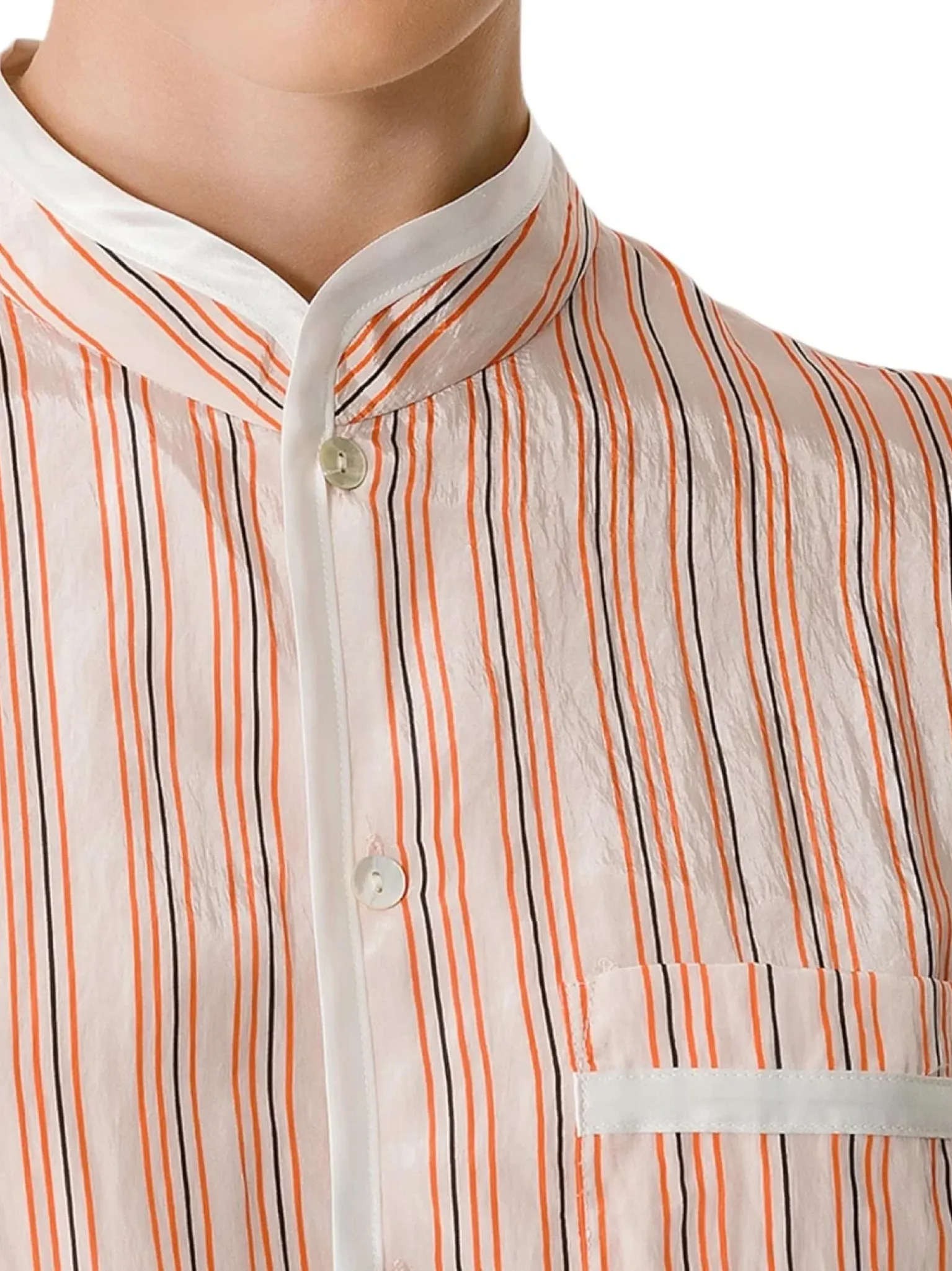 - Col mao, coupe droite, manches longues
