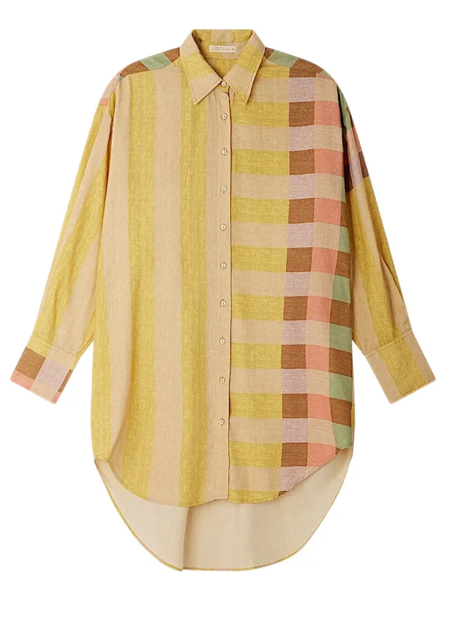 - Fermeture boutonnée sur le devant, coupe ample, bas arrondi
