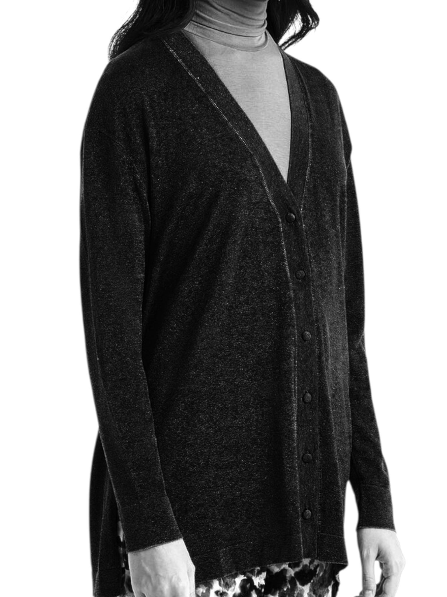 - Léger et lumineux, ce cardigan long en viscose lurex glisse naturellement sur le corps grâce au tricot fluide qui caresse la peau. La coupe est décontractée, la brillance discrète : parfait pour ajouter une touche de lumière au quotidien