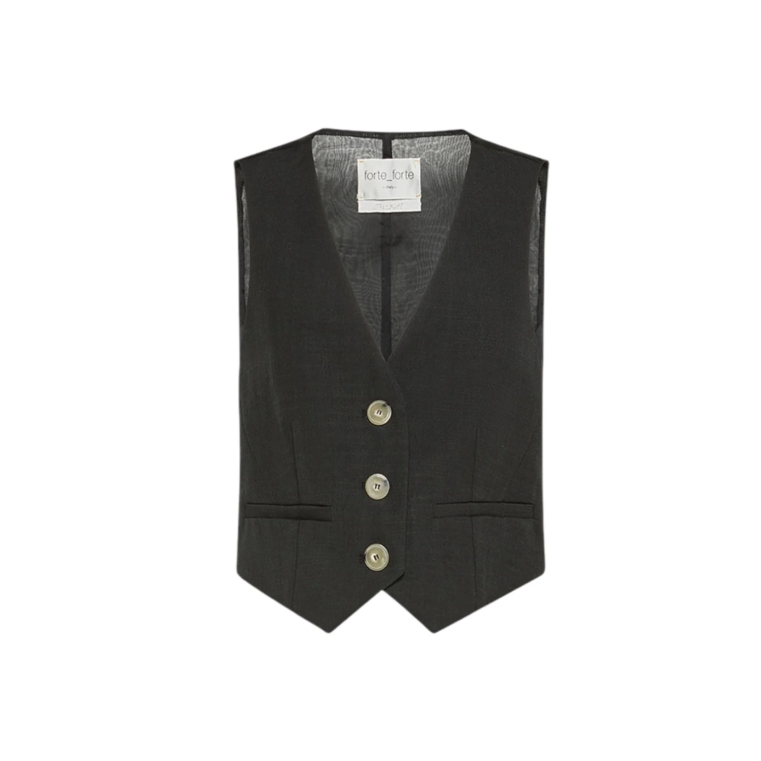 Gilet au volume compact, chic et décontracté grâce au riche tissu de lin et viscose à l’effet chiné. la grâce féminine de ce modèle se lit dans son dos délicat en organza, totalement transparent et extrêmement léger.