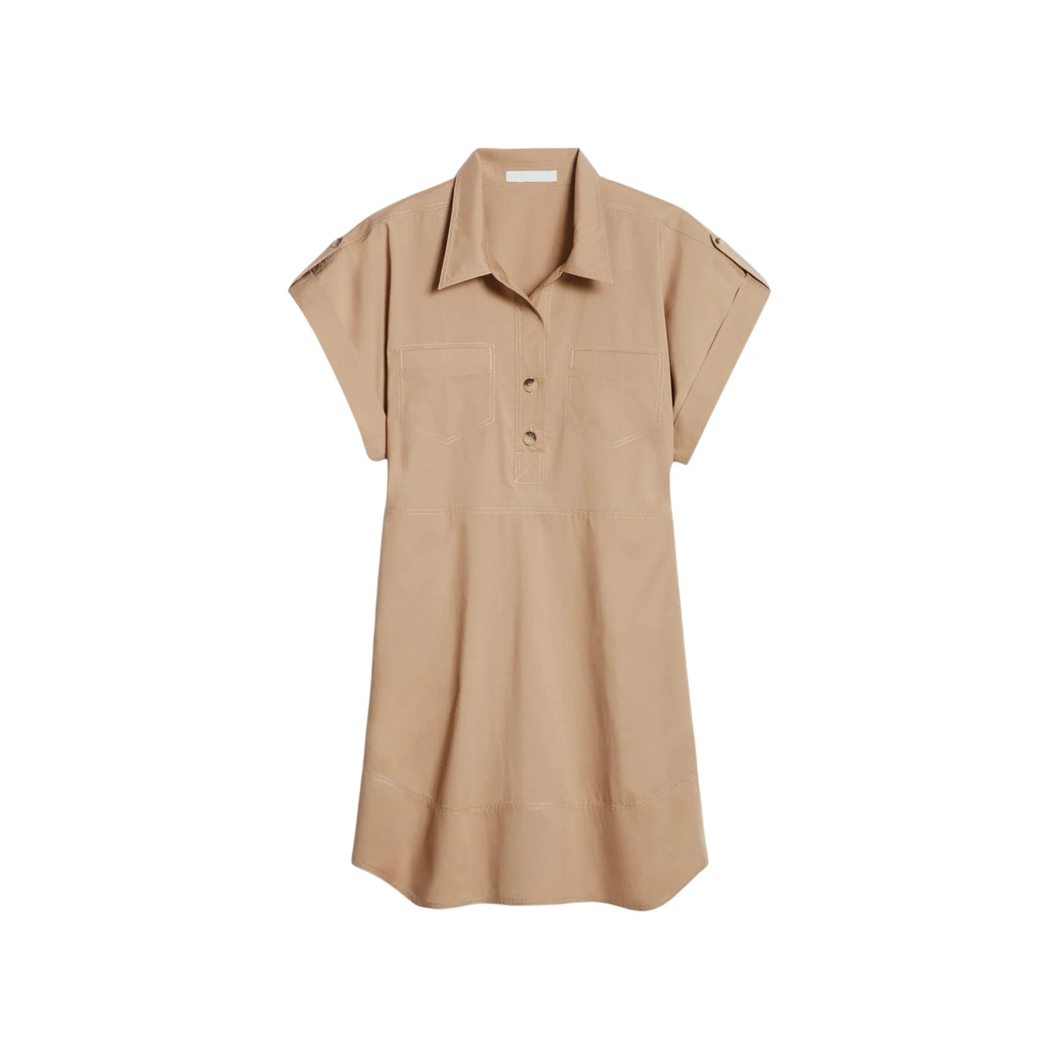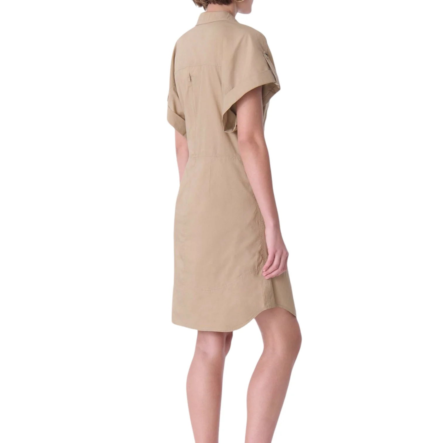 - Robe courte couleur, manches courtes et un col chemise boutonné jusqu’à la taille