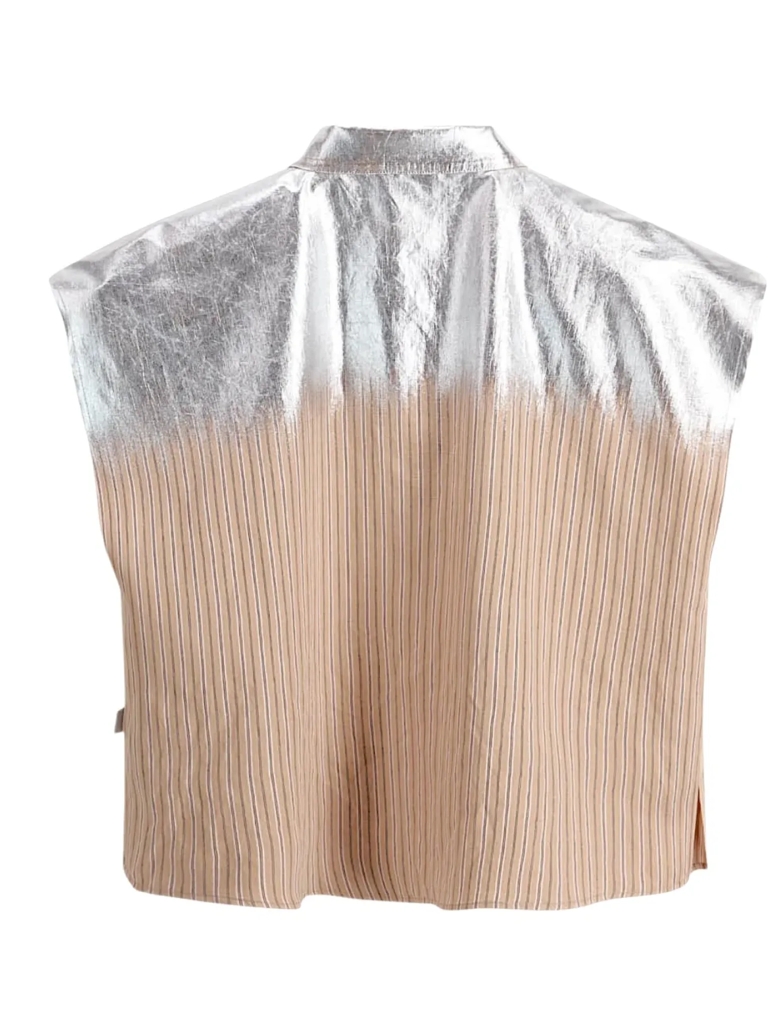 - Chemise à manches courtes en popeline de viscose rayée, laminage argenté sur la partie supérieure