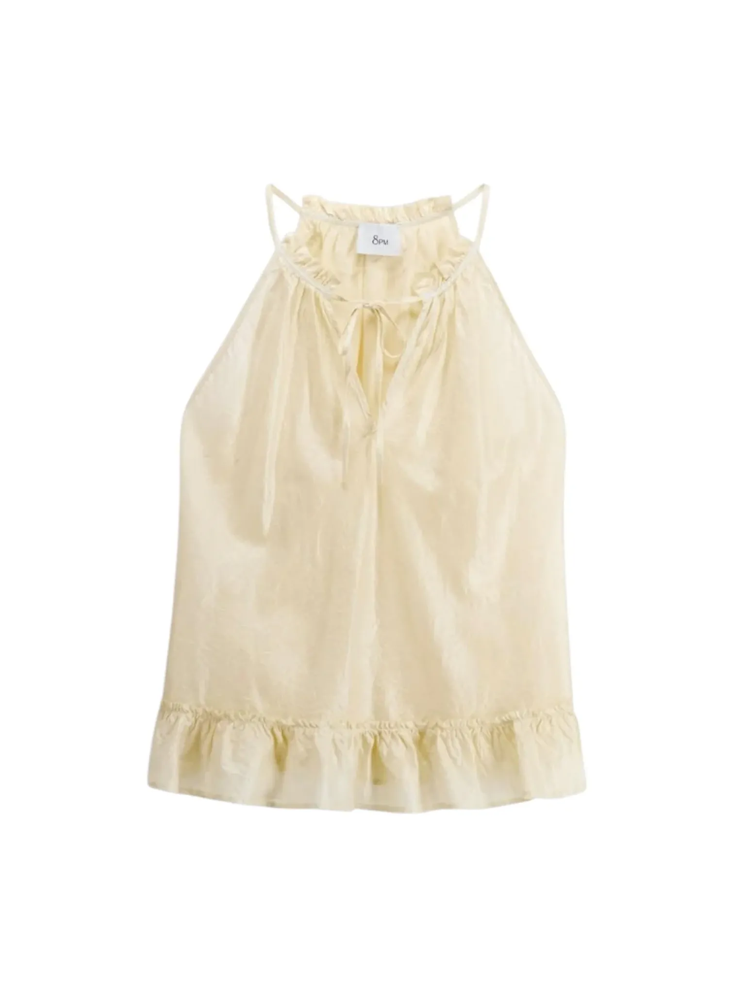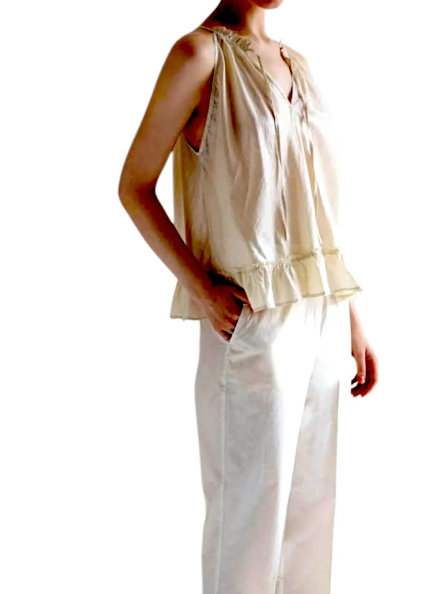 - Top en voile de coton, dos nu, fermeture dos, volant en bas, ouverture devant avec lacets