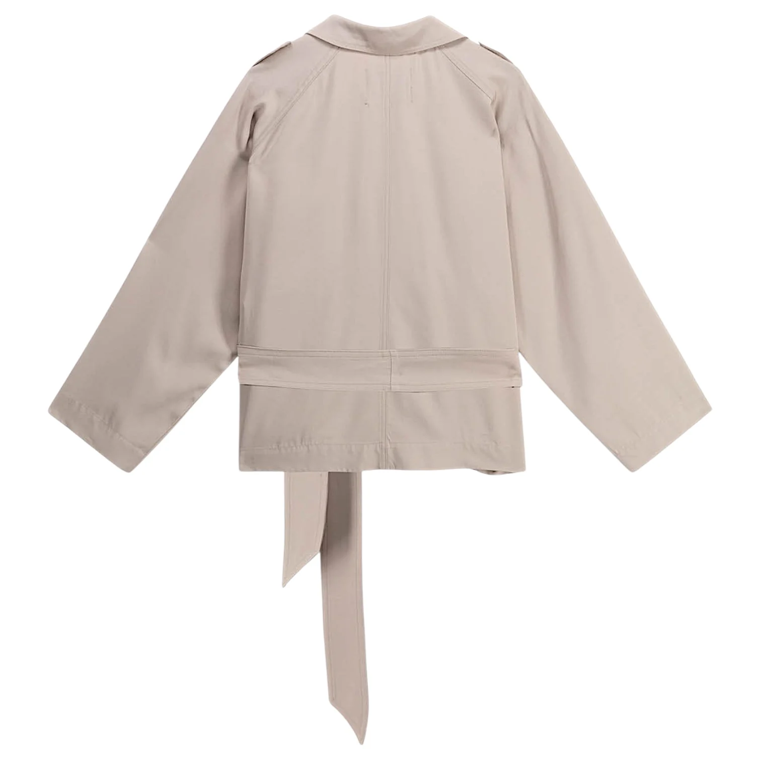 - Trench court en twill de viscose, fermeture croisée devant avec boutons effet corne, manches larges, ceinture dans son tissu