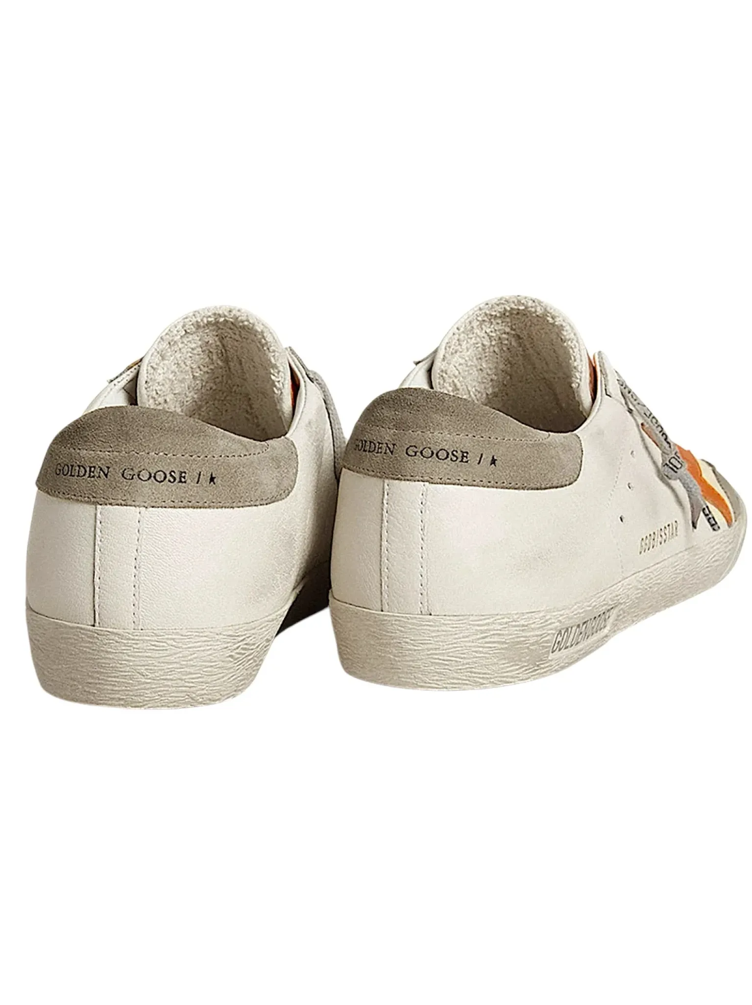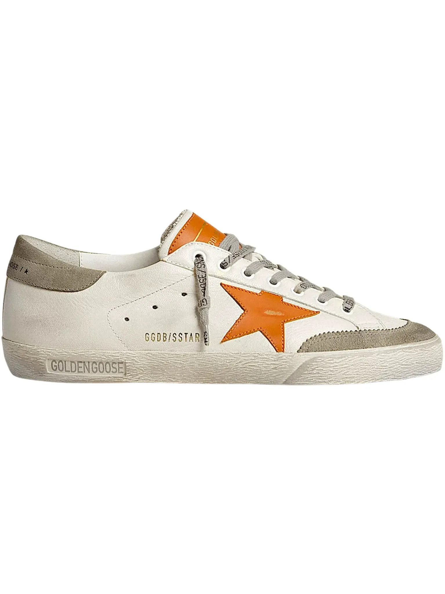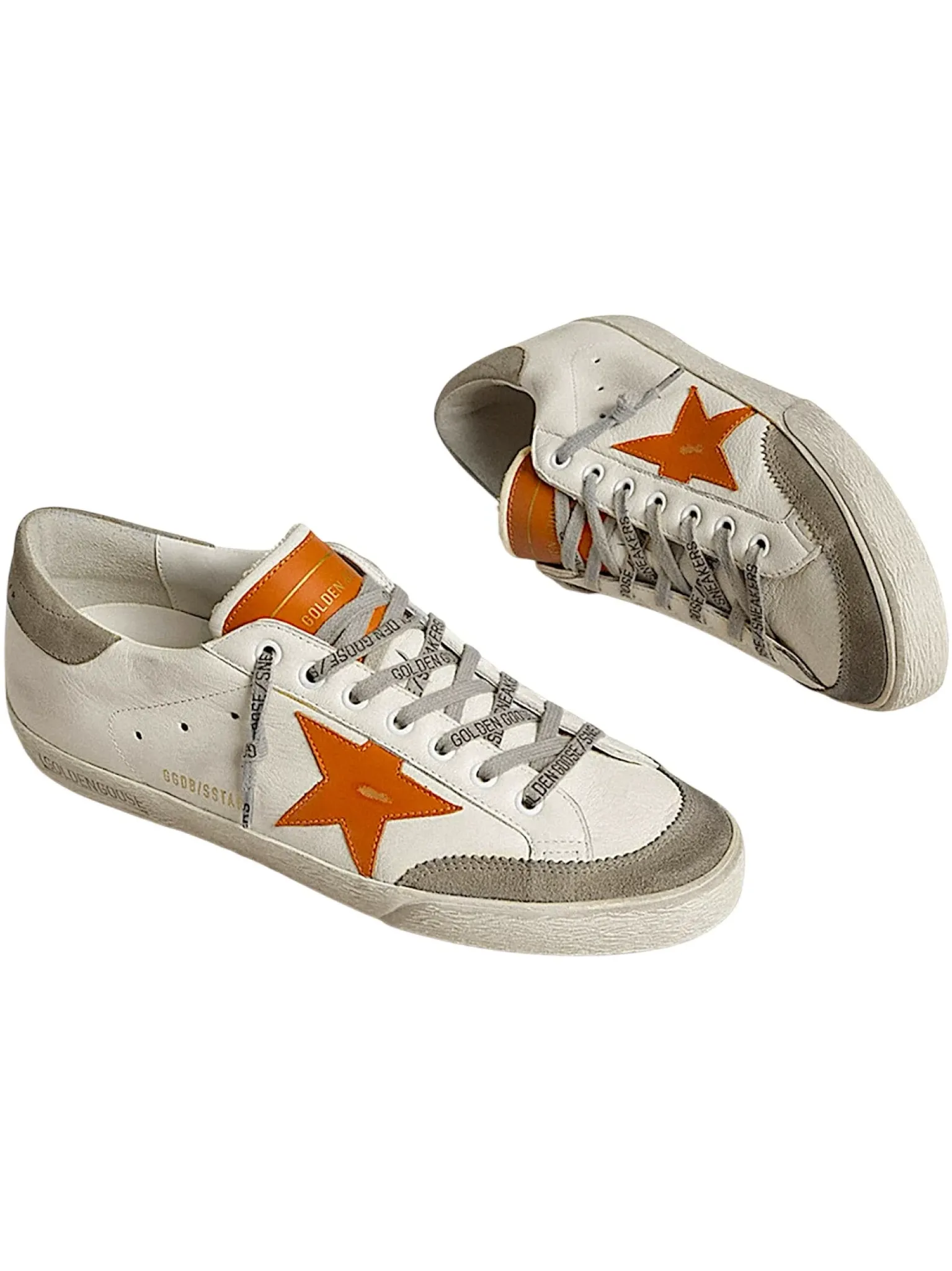 - Logo étoile en cuir orange, renfort talon en cuir gris, lacets gris
