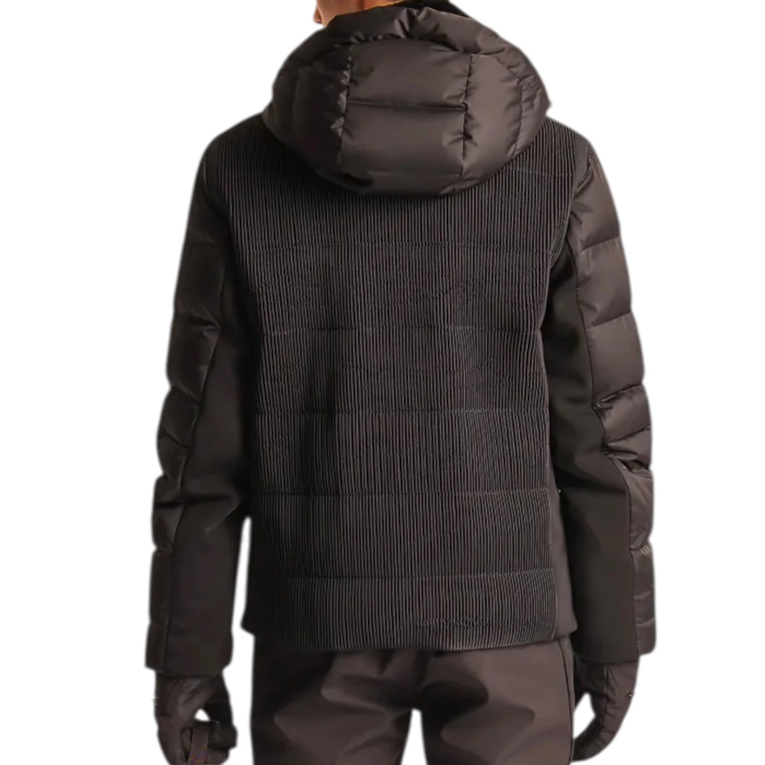 - 3 poches extérieures, poche ski pass, poche poitrine et poche lunettes intérieures, aérations sous les bras, pare-neige fixe avec élastique anti-dérapant