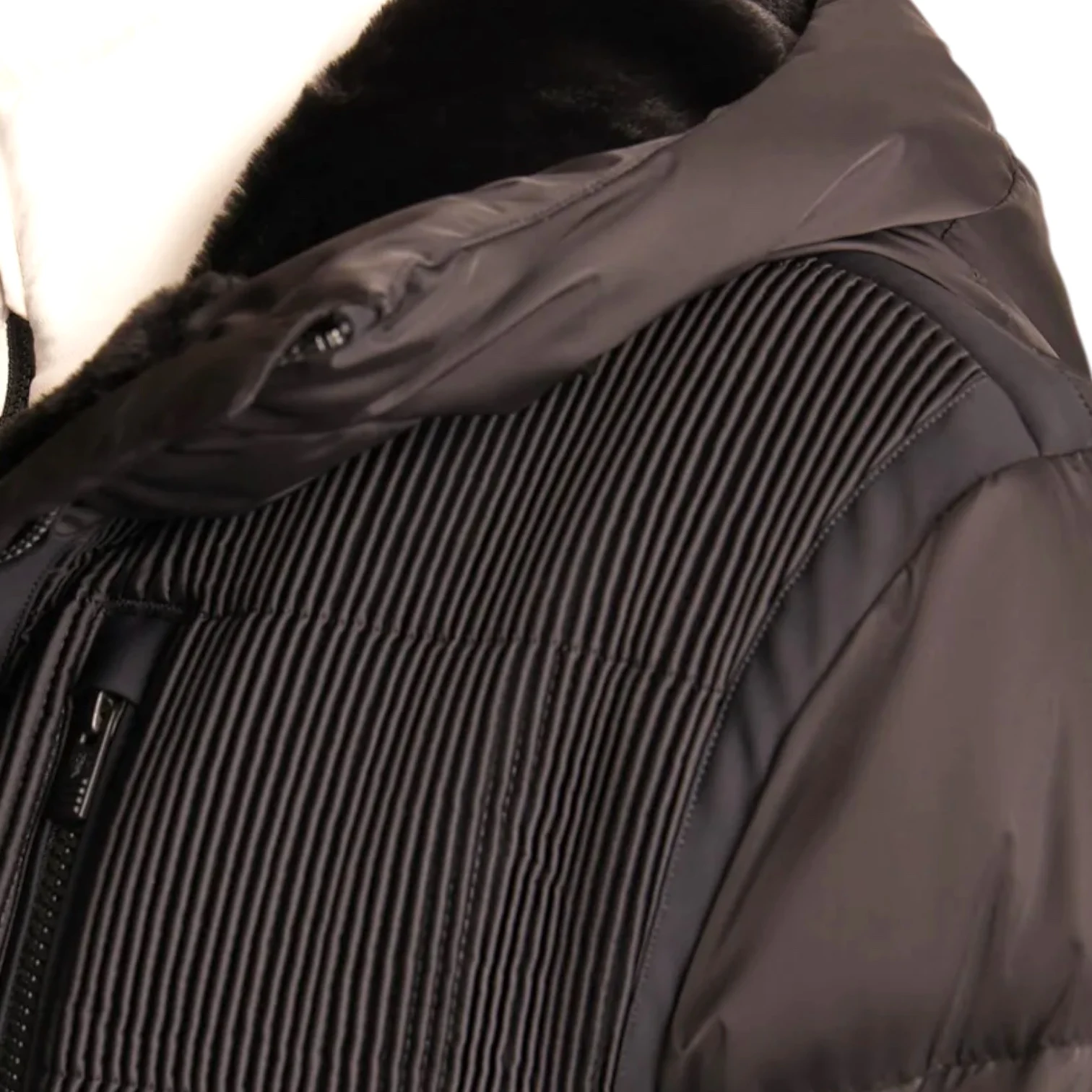 - Ouate PrimaLoft® respirante au corps, capuche attenante doublée en fausse fourrure, manchons en tricot