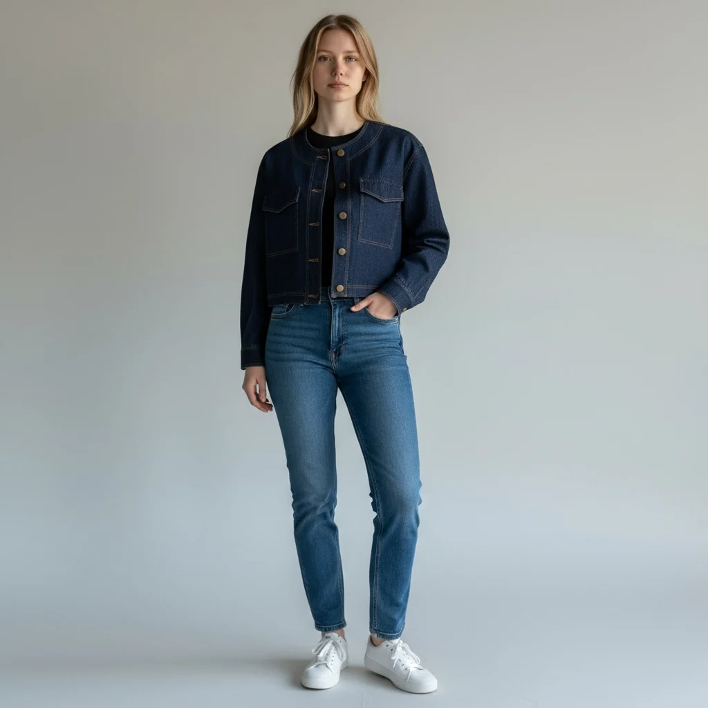 - Boutonnière sur le devant, poches plaquées, manches longues