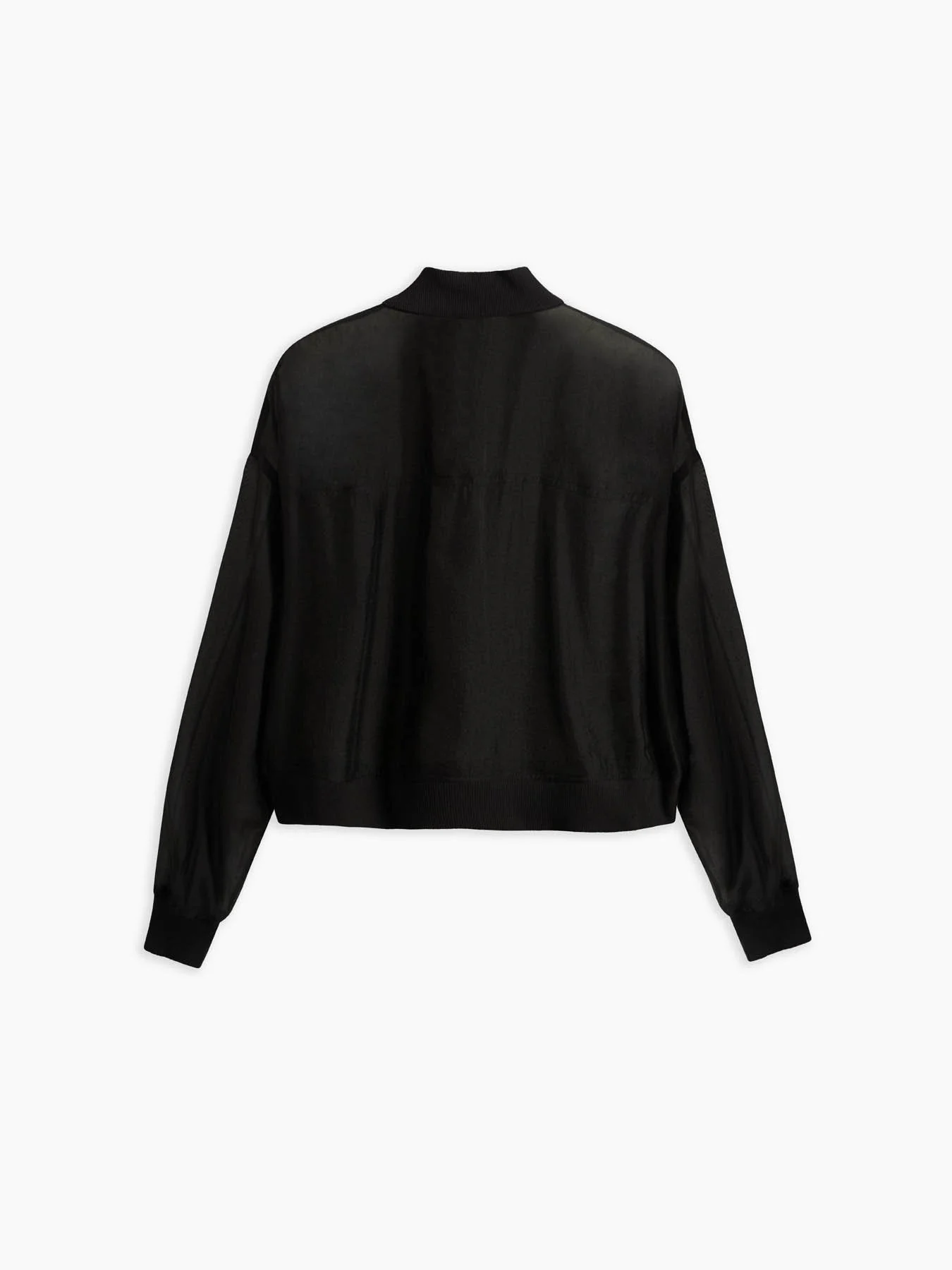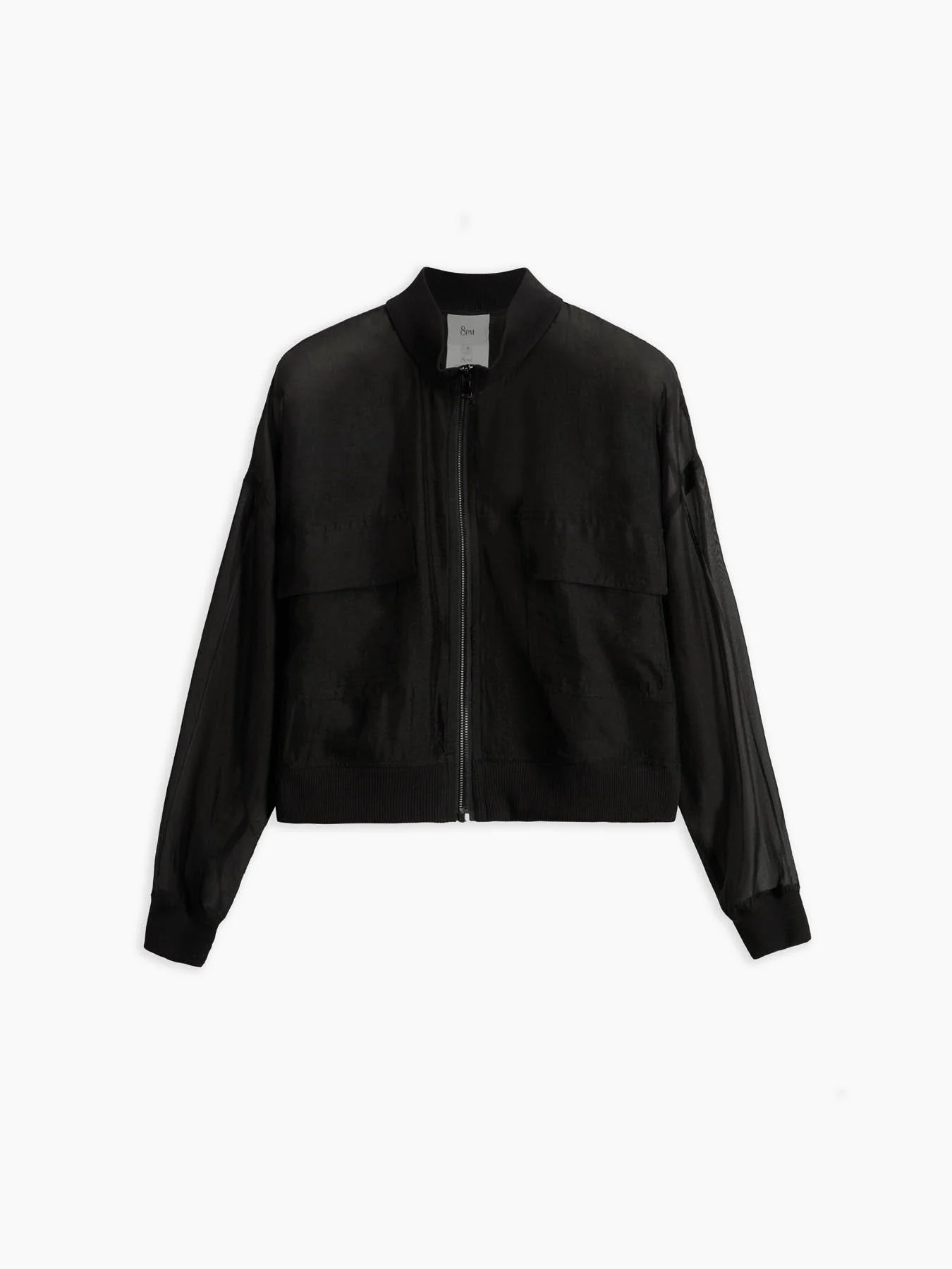 - Veste en organza de viscose, fermeture zippée centrale ton sur ton, col et bords côtelés ton sur ton, deux poches plaquées sur le devant avec rabat, coupe regular