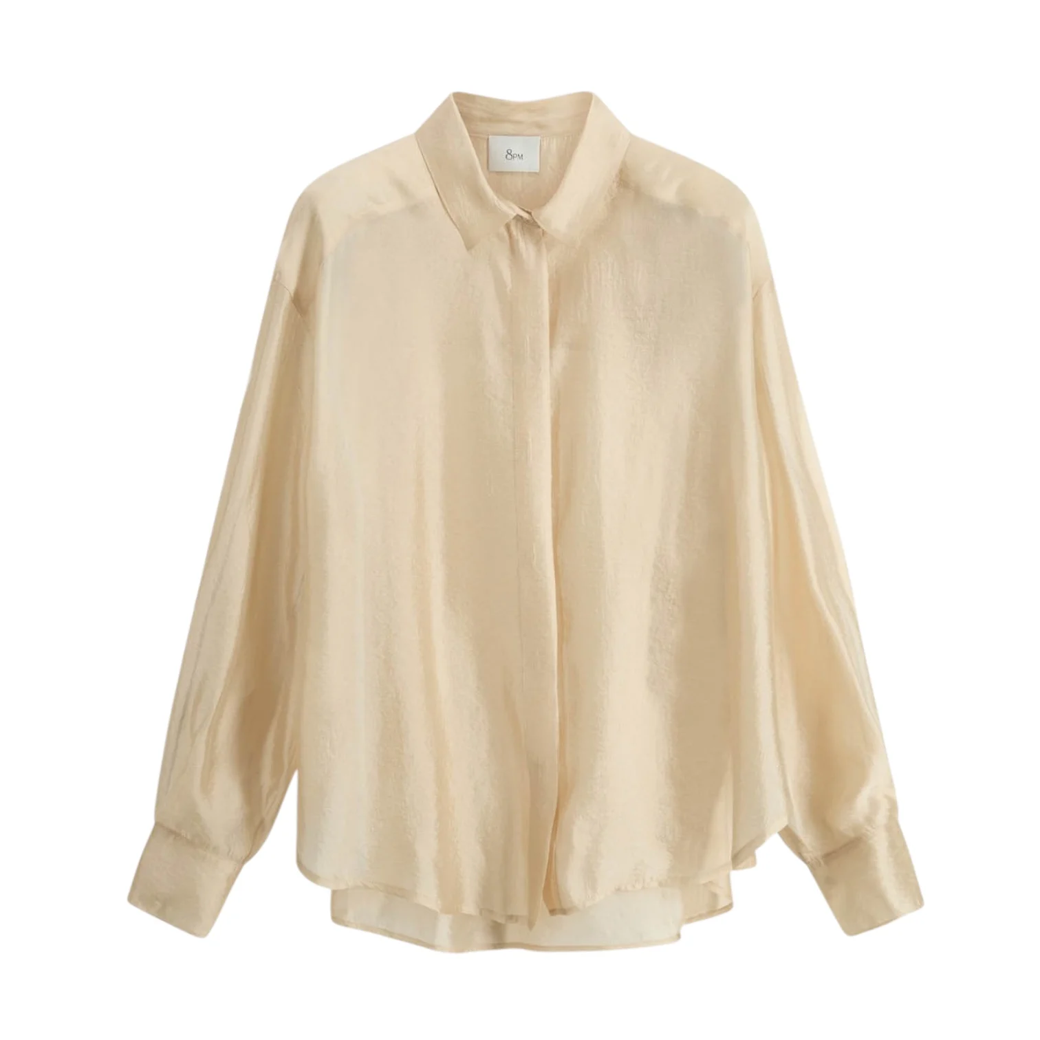 - Chemise oversize à manches longues en organza, fermeture centrale dissimulée avec boutons
