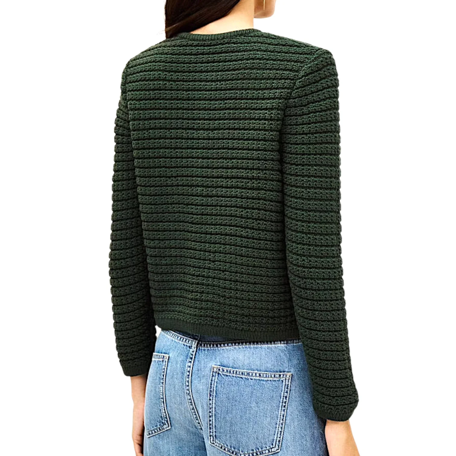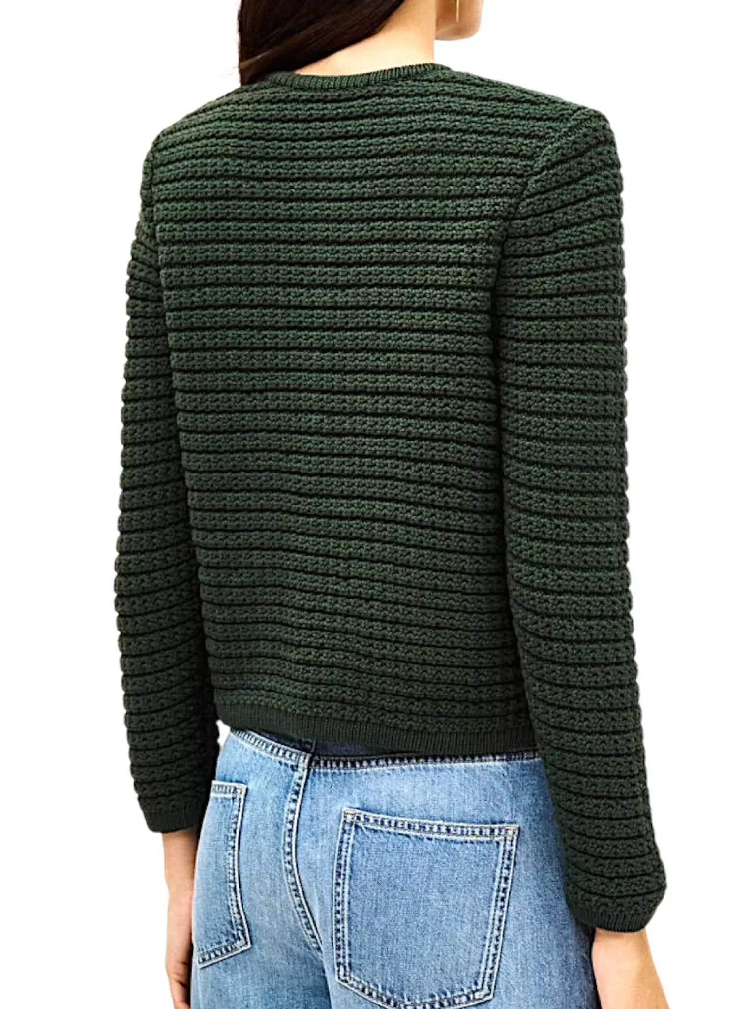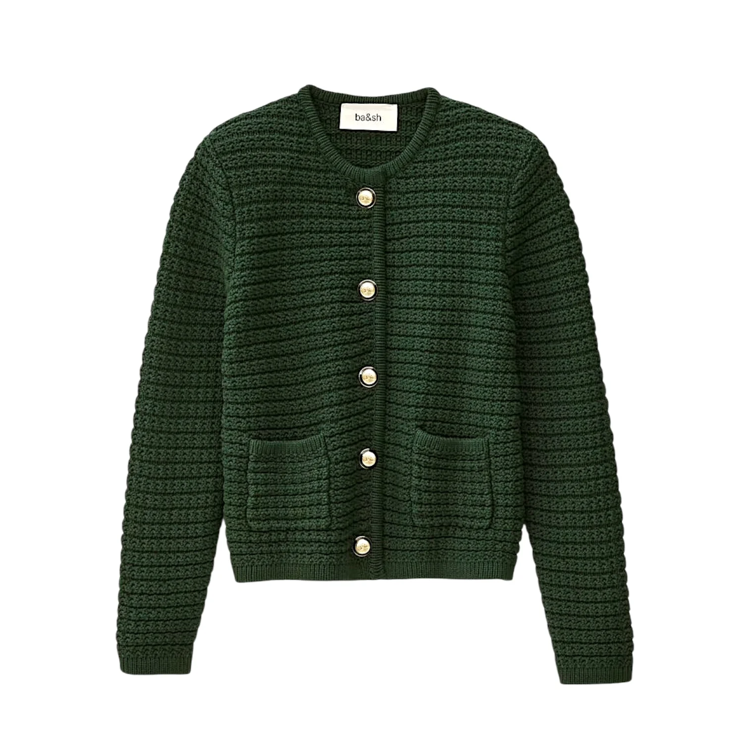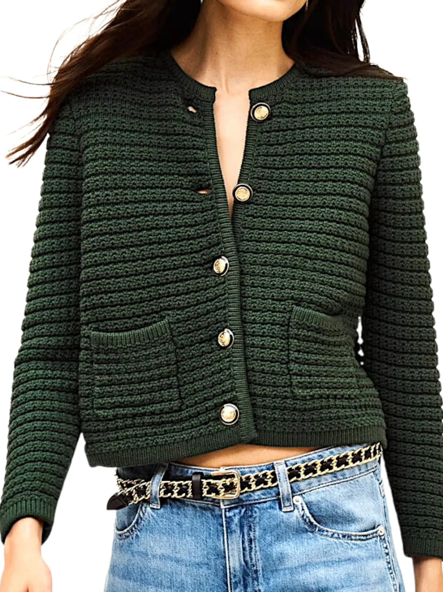 – Gilet court, col rond, fermeture boutons, poches plaquées