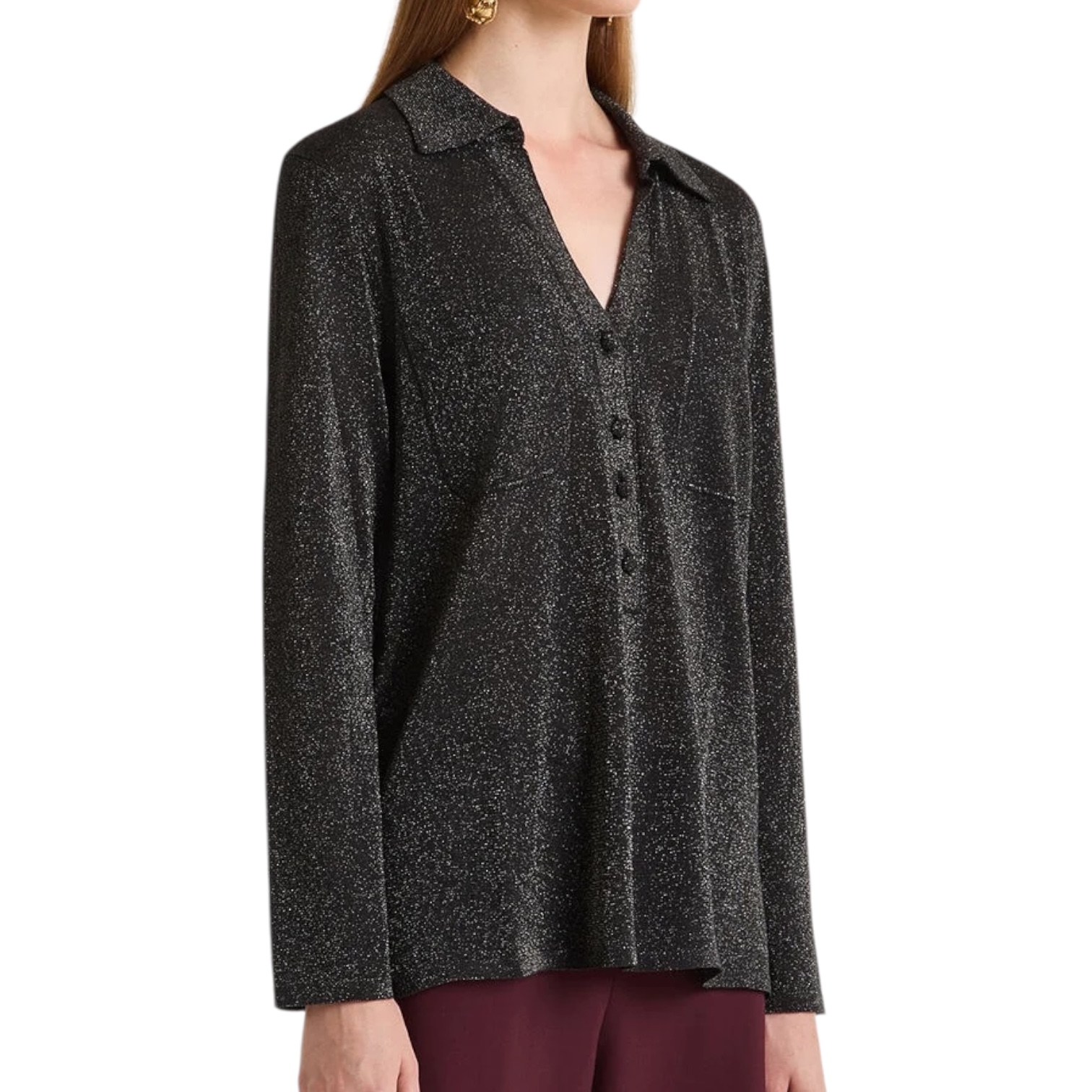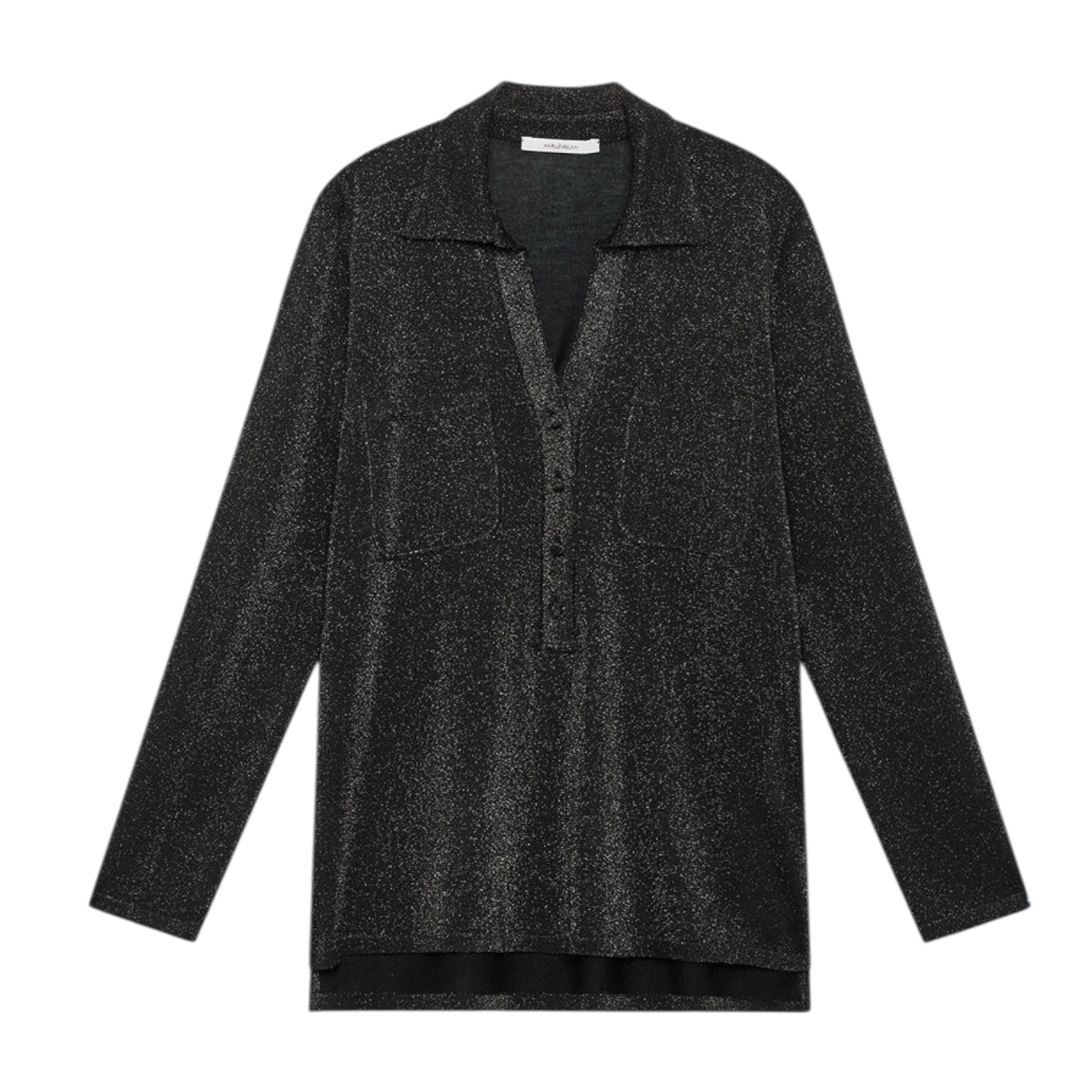 Un polo qui n’a plus besoin de présentation. En viscose lurex légère, avec col et poches, c’est la pièce passe-partout pour des looks sophistiqués mais faciles. Il brille à chaque mouvement