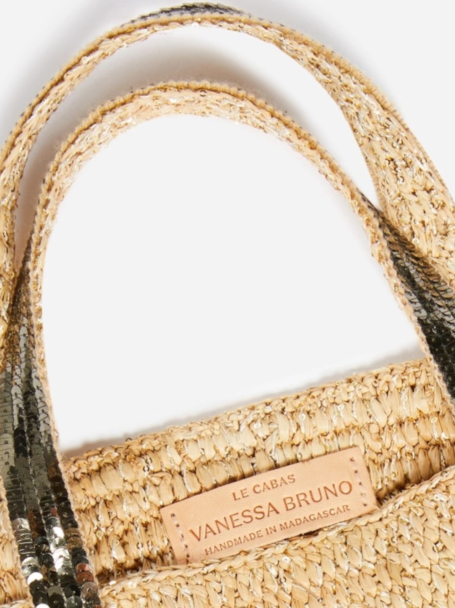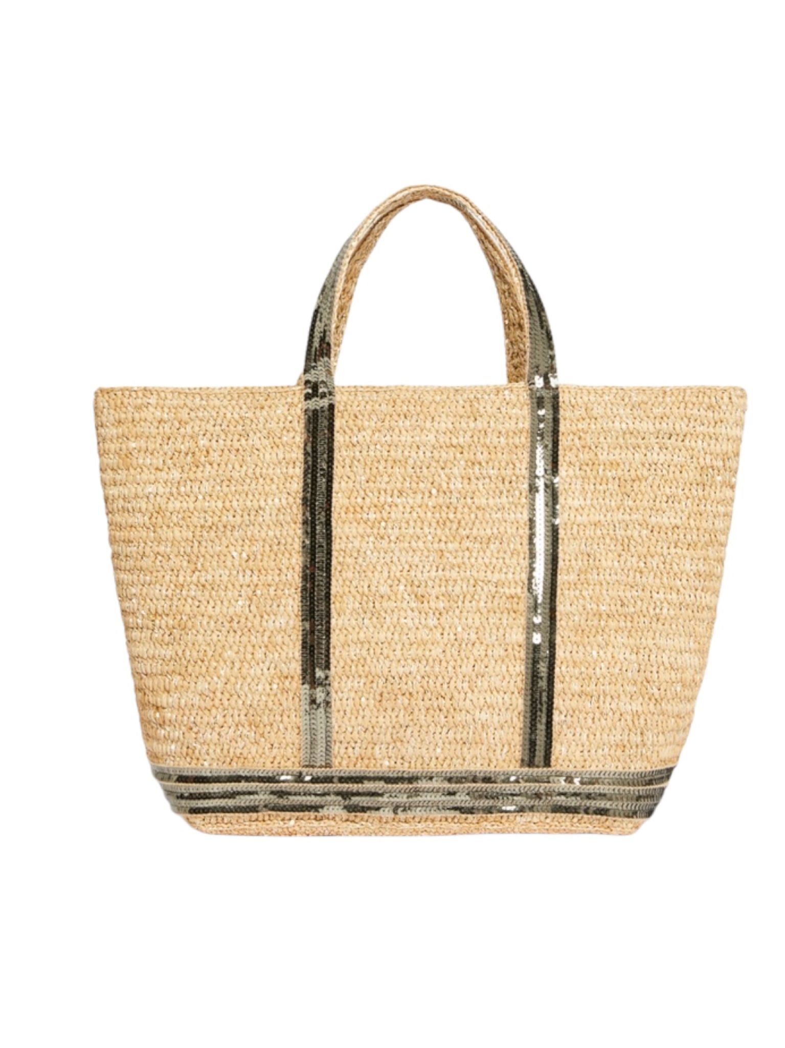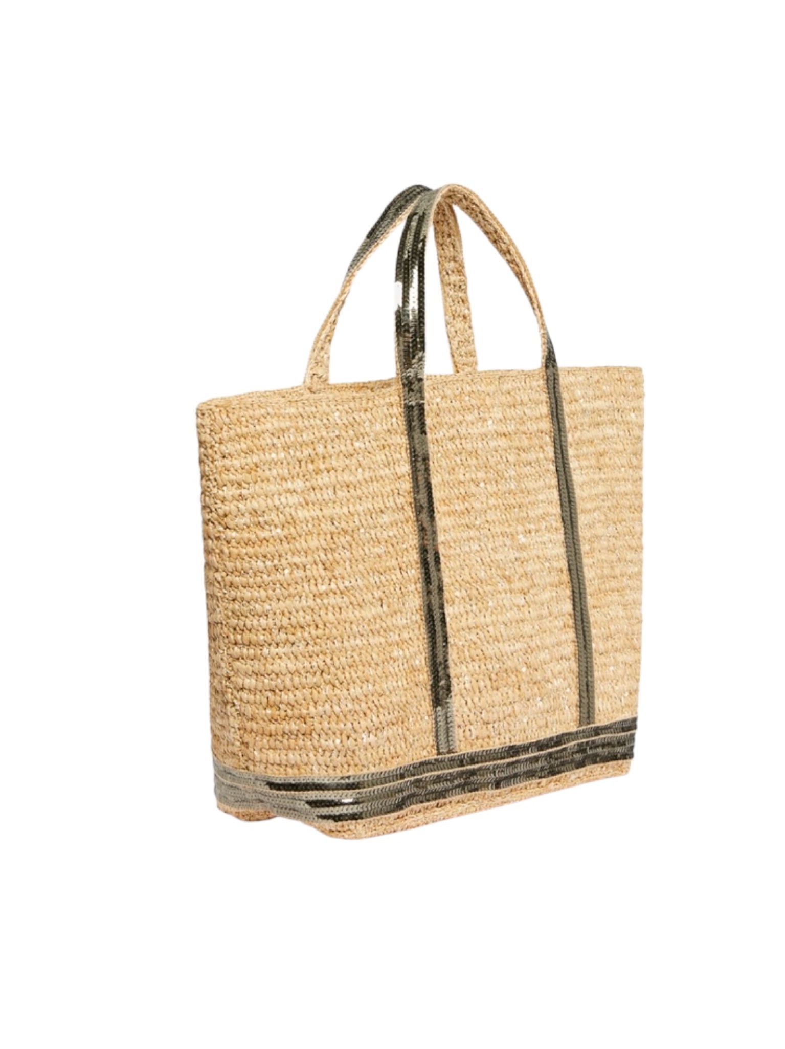 - Modèle : Cabas M Raphia parsemé de sequins, paillettes kaki, porté main