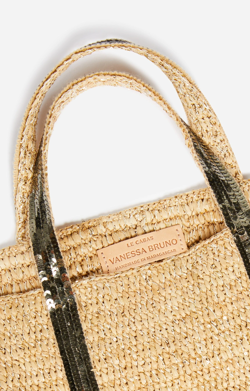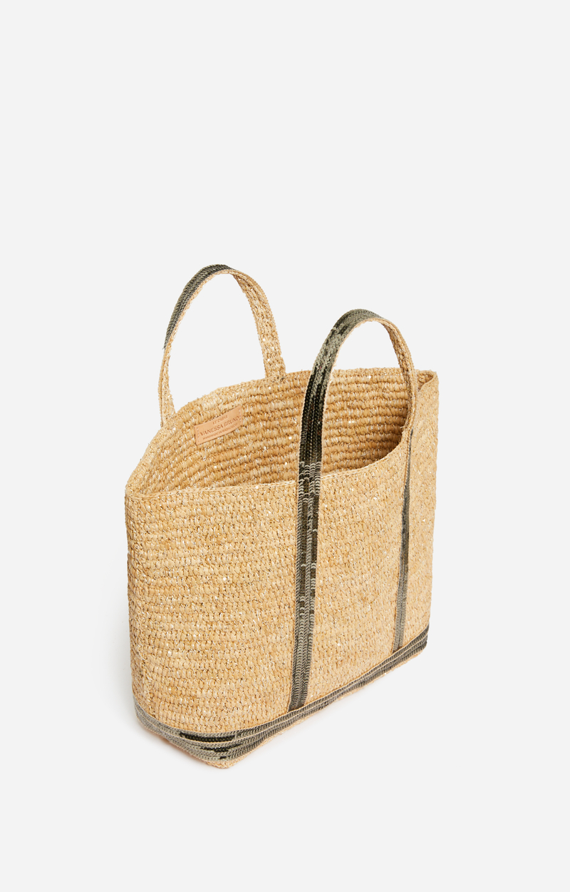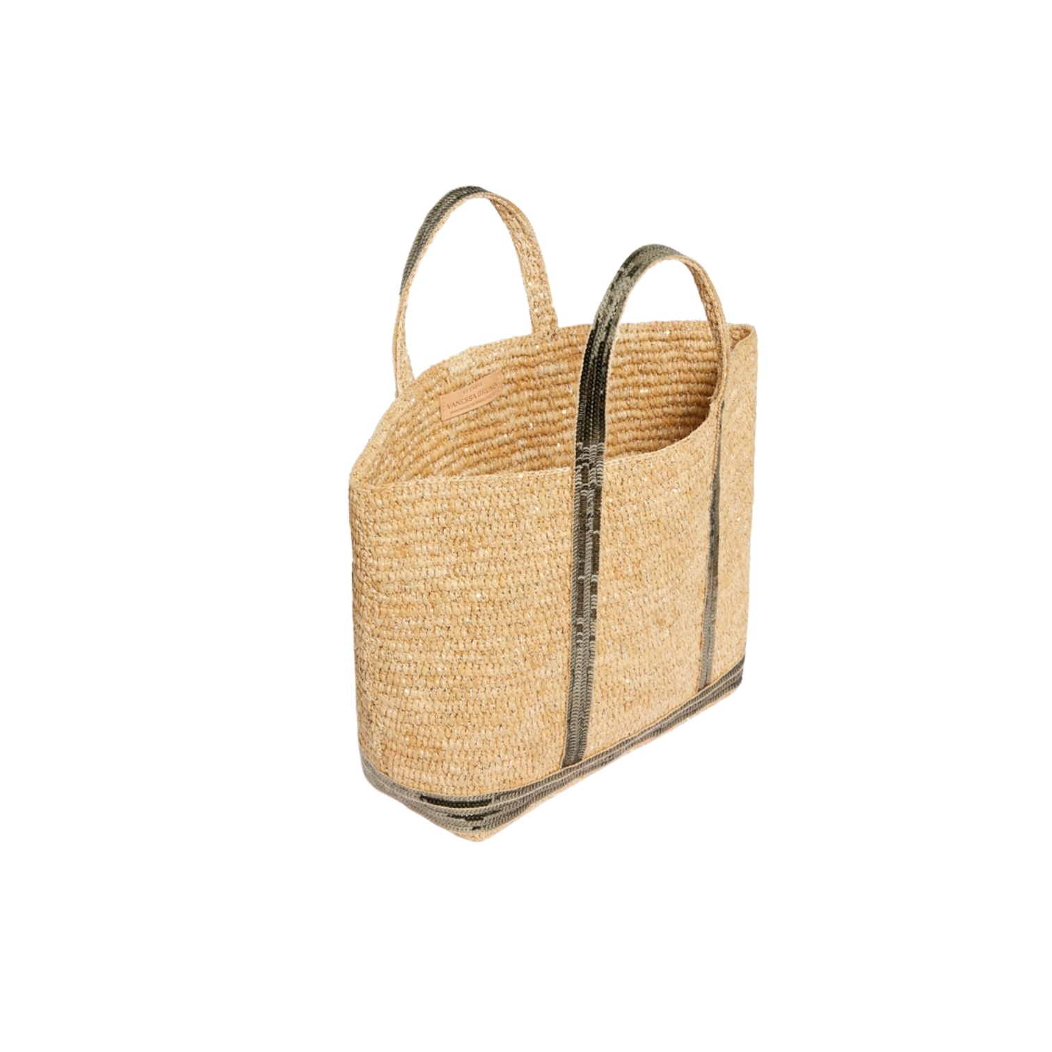 - Modèle : Cabas M Raphia parsemé de sequins, paillettes kaki, porté main