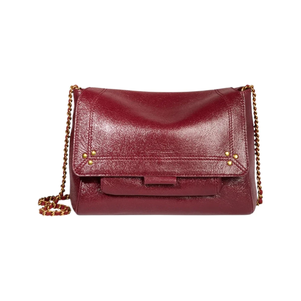 - Une bandoulière chaîne et cuir amovible et ajustable en deux longueurs; mesurant au maximum 105 cm et dimension au plus court 52,5 cm; avec large patte épaule en cuir pressionnée