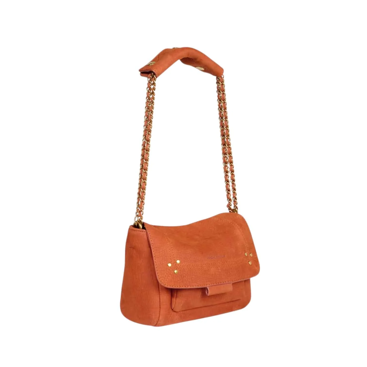 - Une bandoulière chaîne et cuir amovible et ajustable en deux longueurs; mesurant au maximum 105 cm et dimension au plus court 52,5 cm avec large patte épaule en cuir pressionnée.
