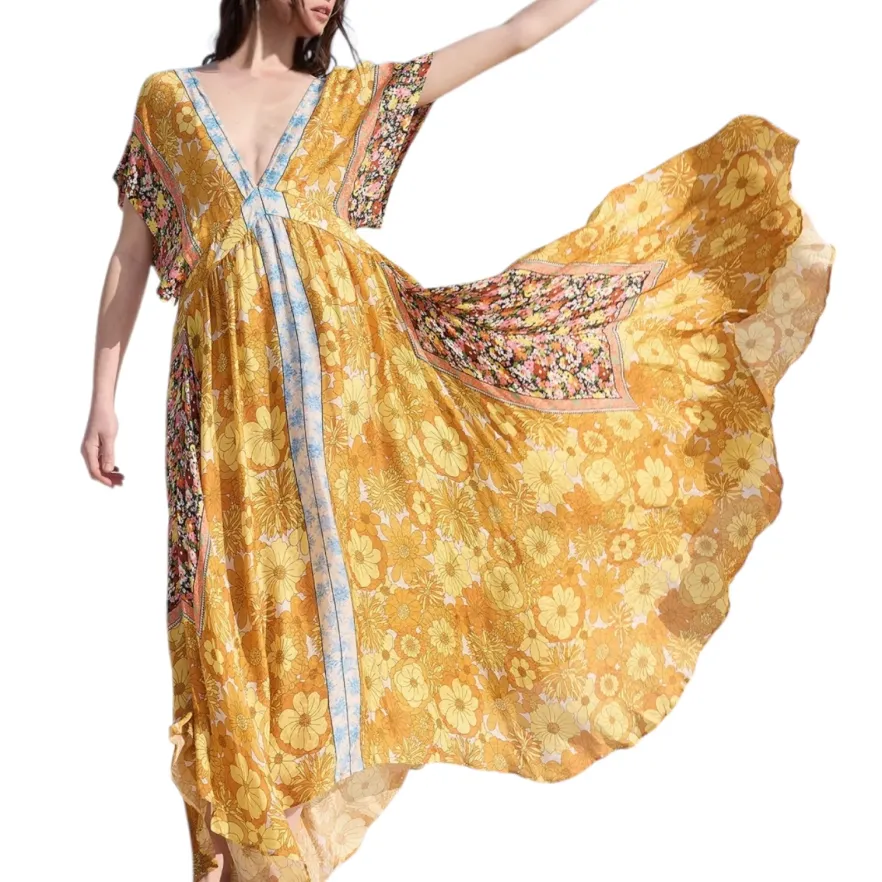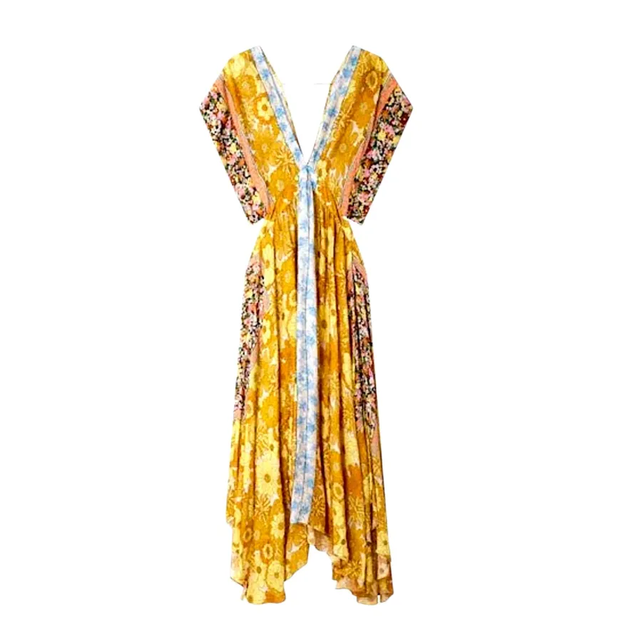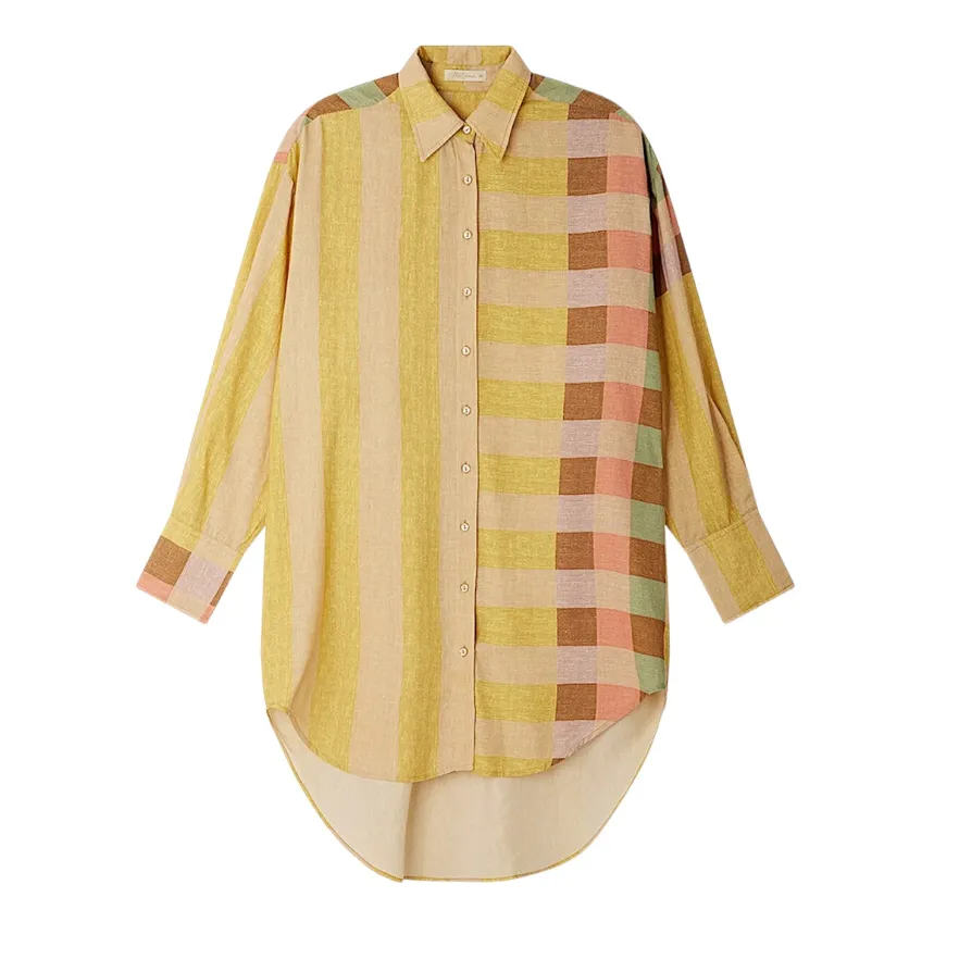 Le vestiaire Mes Demoiselles Paris se décline en robes fluides, jupes légères, chemisiers aériens et kimonos enveloppants, confectionnés dans des matières nobles : soie, lin, laines d’exception, parfois rehaussées d’une touche de lurex. Les tissus, souvent tissés à la main selon des techniques artisanales indiennes, révèlent de jolis délavés, des couleurs vibrantes et des imprimés floraux poétiques.