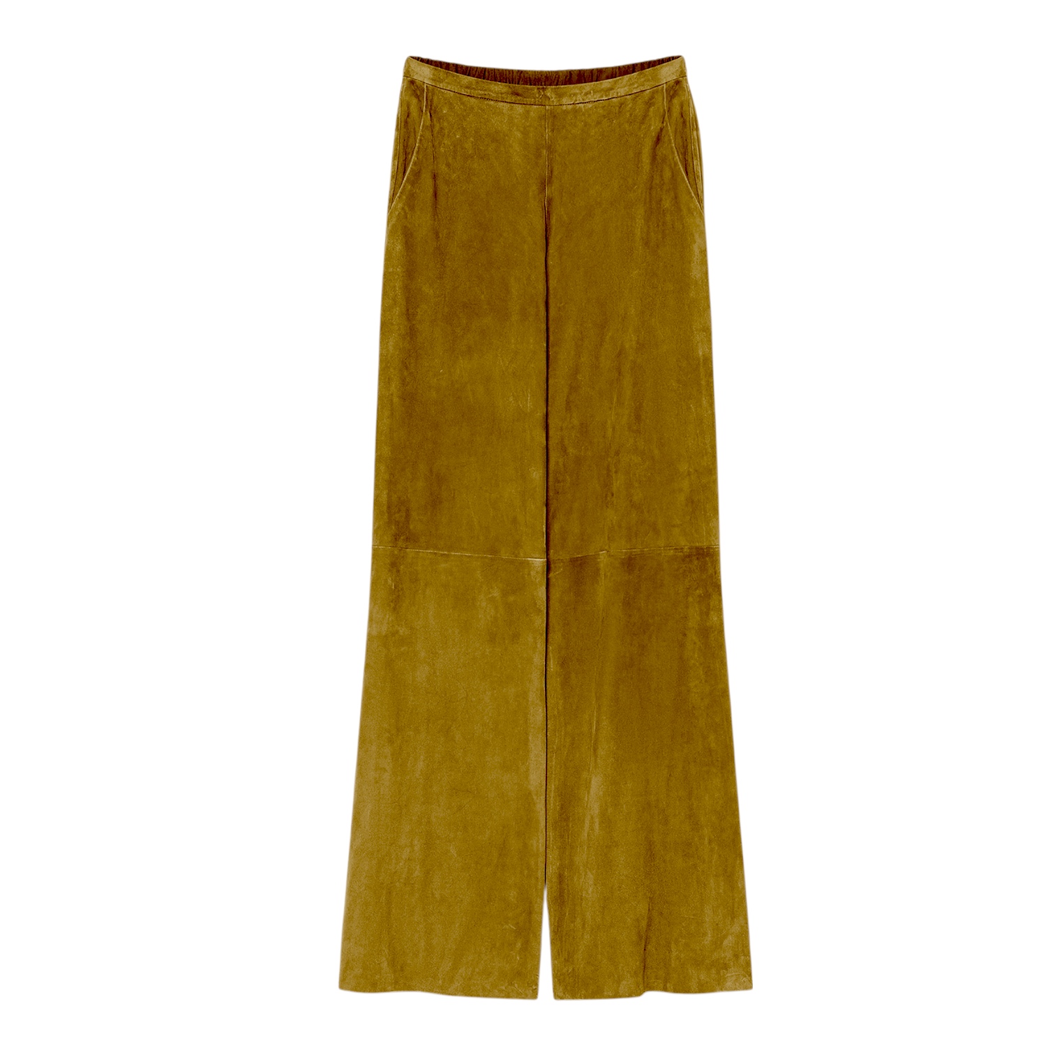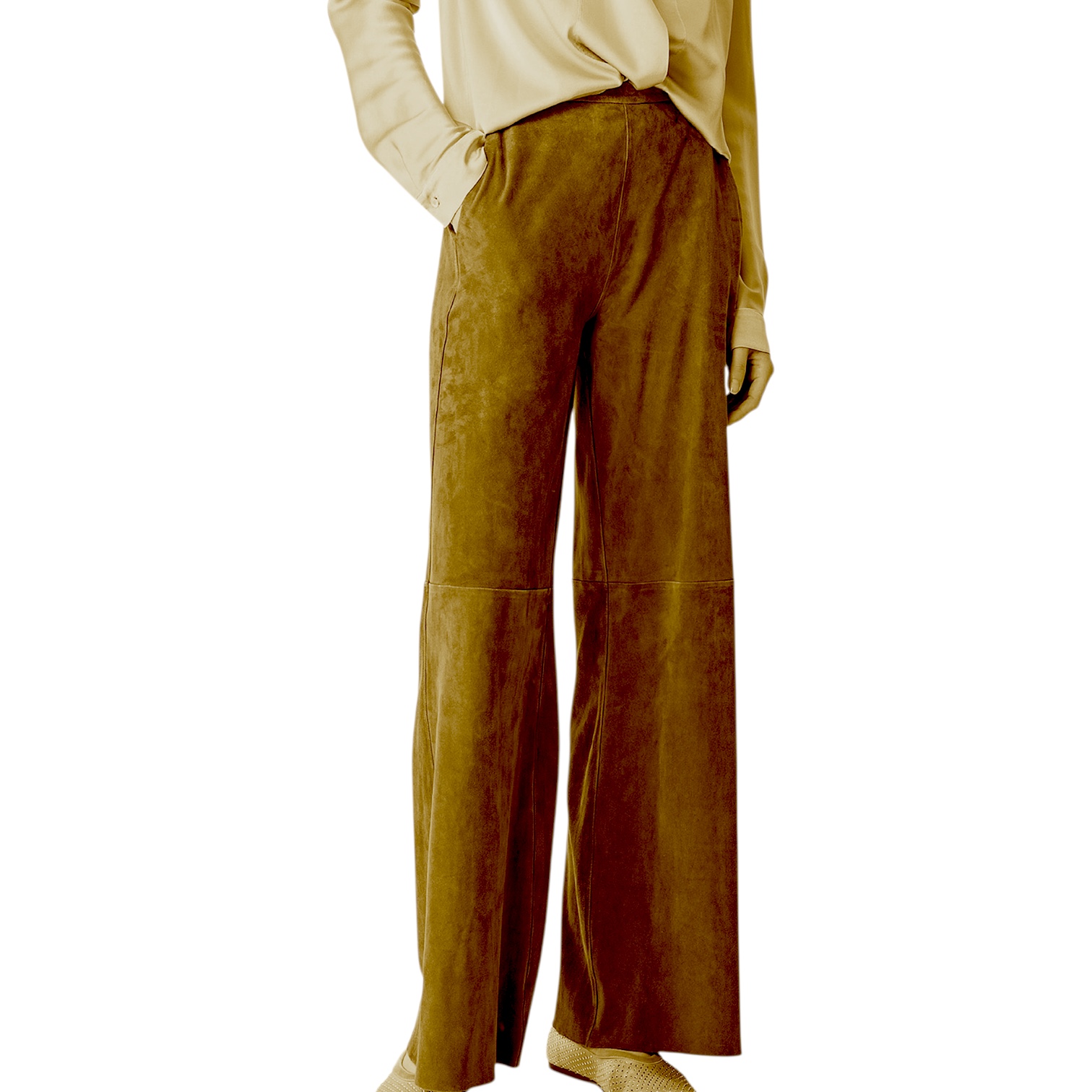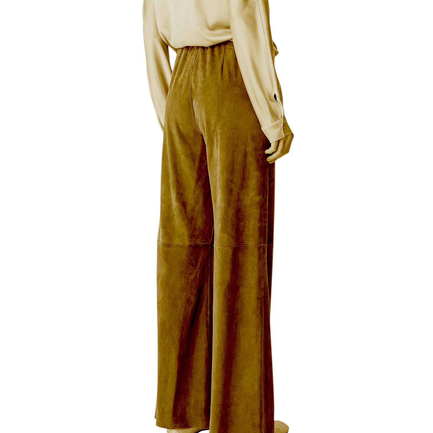 Taille haute, tombé fluide, coupe droite, taille élastique
