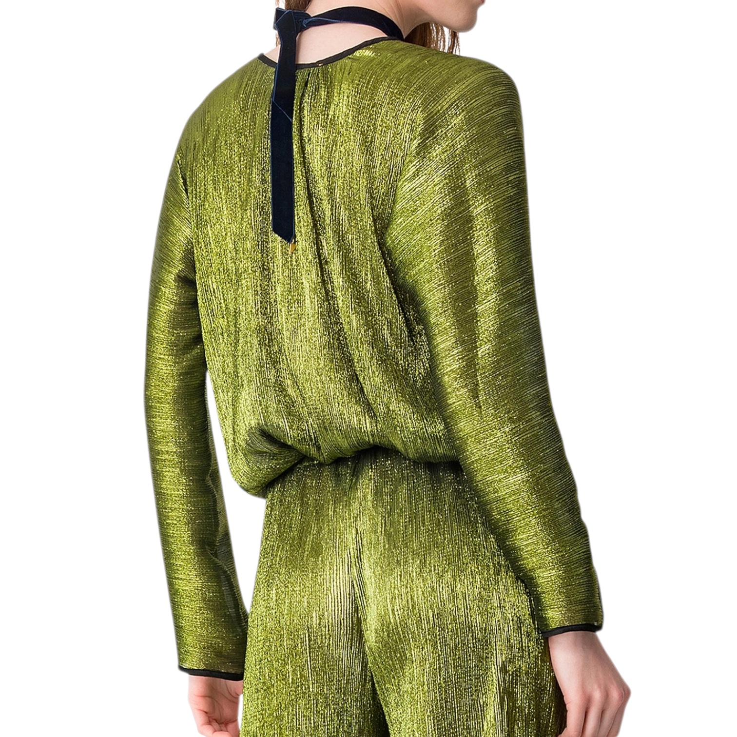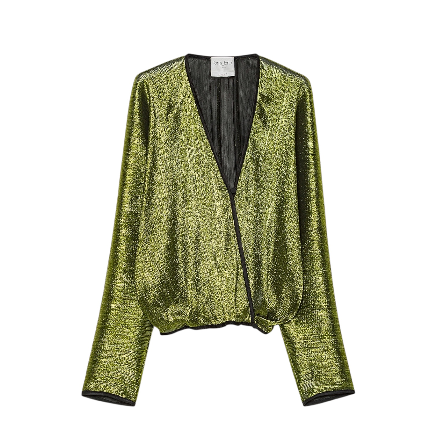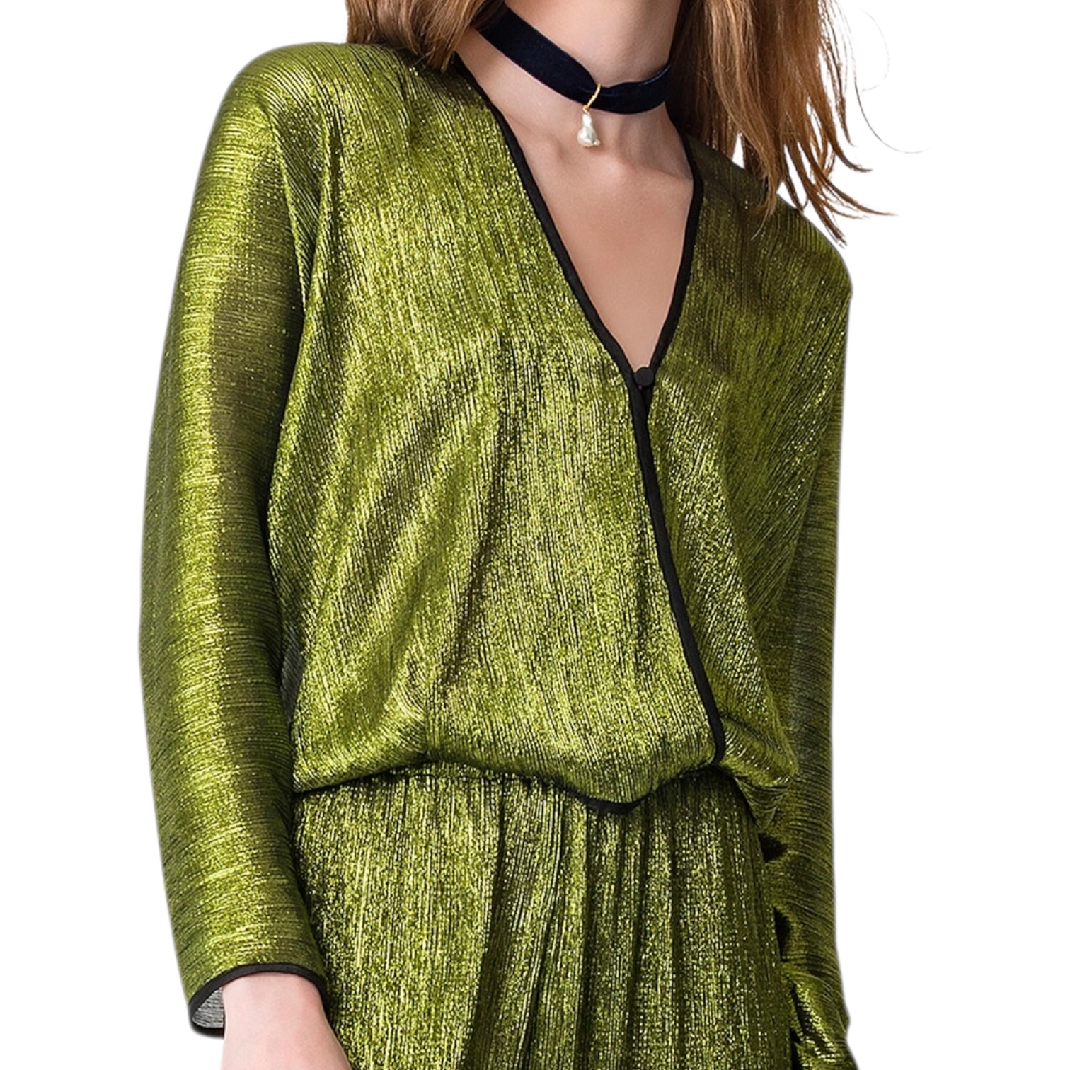 Coupe courte, lamé froissé, décolleté V, croisé sur le coté