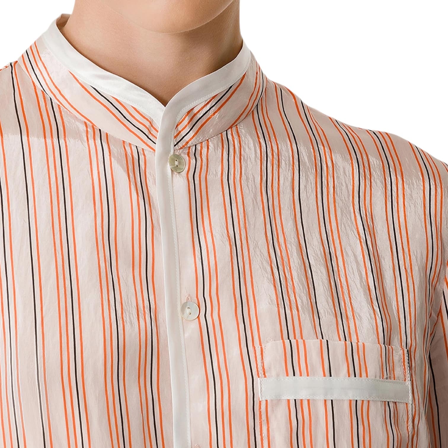 - Col mao, coupe droite, manches longues