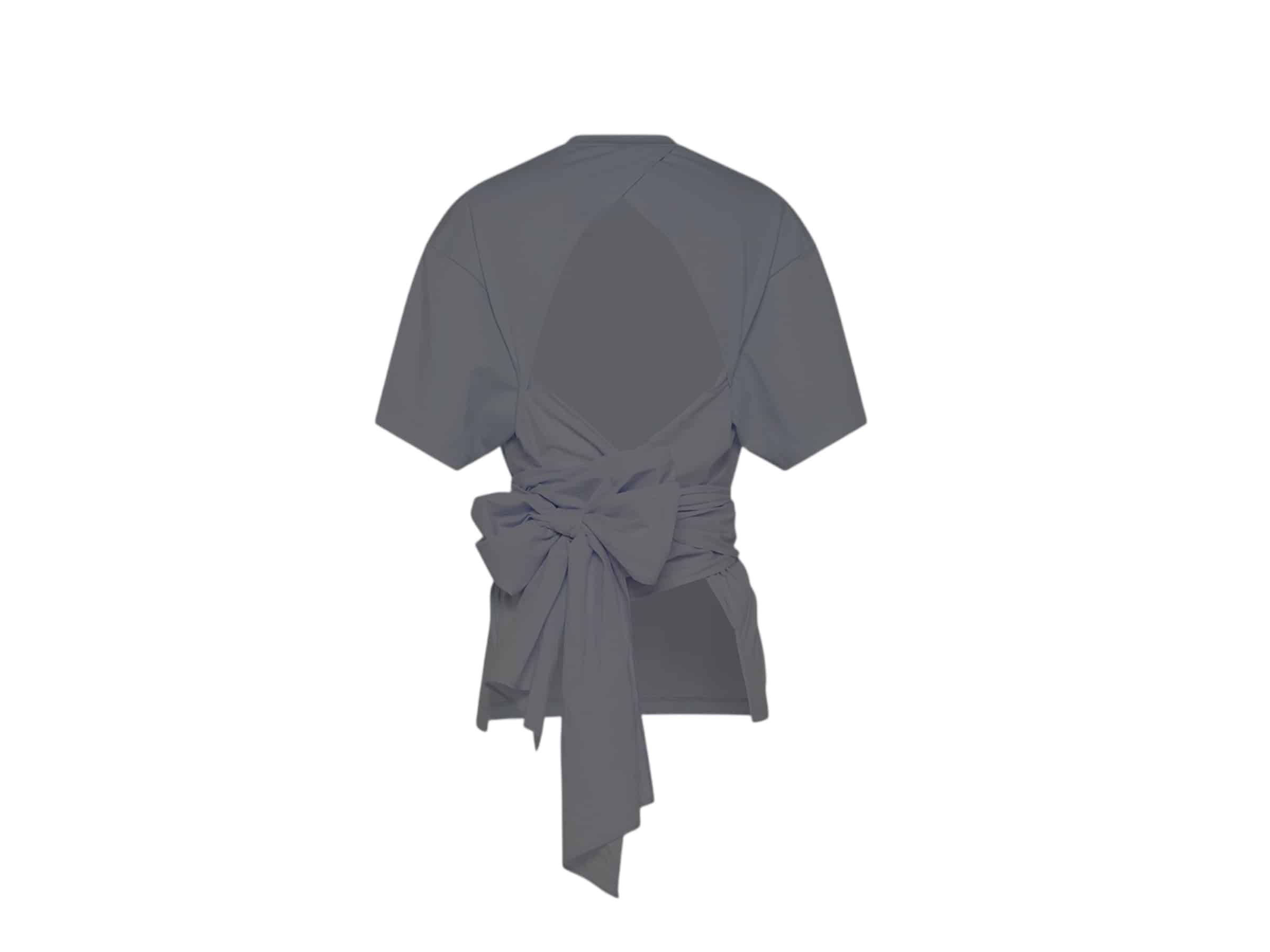 - Tee-shirt avec nœud réalisé en jersey de pur coton teint en pièce. Orné d’une fâche à nouer à la taille et une construction ouverte dans le dos